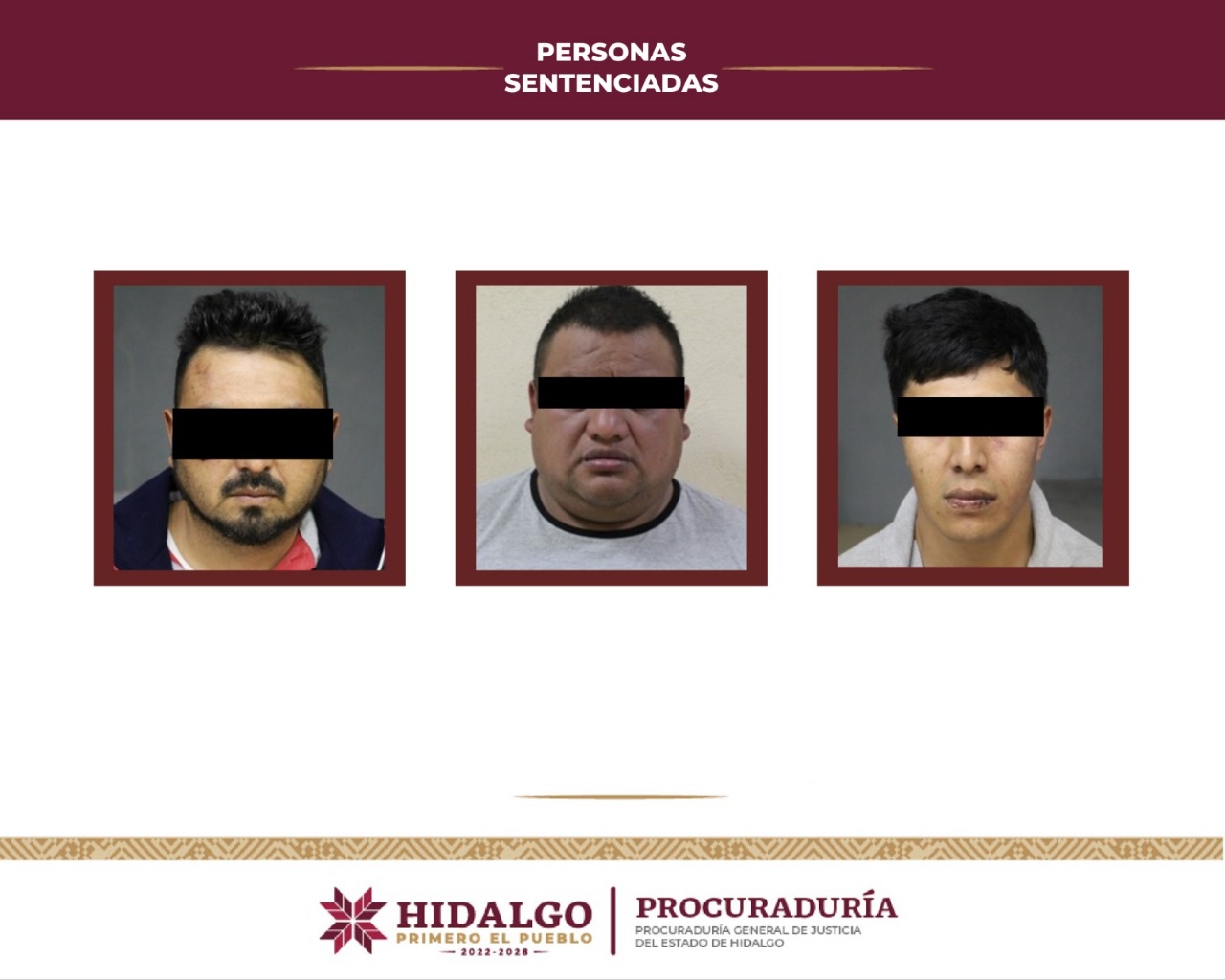 En agosto de 2021, la víctima se encontraba al interior de un inmueble cuando de manera violenta sus victimarios la privaron de su libertad y de manera inmediata realizaron llamadas telefónicas para exigir el pago de tres millones de pesos a cambio de su libertad. Los hechos fueron denunciados ante el Ministerio Público y así la Unidad Especializada en el Combate al Secuestro (UECS) tuvo intervención mediante la que a través de un equipo multidisciplinario comenzaron las indagatorias.A partir de los datos de prueba de los que se allegó esta representación social, personal ministerial adscrito a la UECS implementó un operativo táctico y de inteligencia al tiempo que especialistas se hicieron cargo de las negociaciones.Derivado de dicho operativo, se logró el rescate de la víctima y la detención de dos personas identificadas con iniciales A. L. C., y S. A. L. J., quienes fueron presentadas ante un juez de control para que agentes del Ministerio Público les formularan imputación y solicitaran su vinculación a proceso.Mientras eso ocurría, una tercera persona involucrada, identificada como J. D. R. B. fue detenida mediante orden de aprehensión ejecutada por elementos de dicha unidad antisecuestros de la Procuraduría General de Justicia del Estado de Hidalgo y también fue presentada ante un juez de control, quien dictó el auto de vinculación a proceso. Tras concluir las etapas del proceso penal, un tribunal de enjuiciamiento dictó sentencia condenatoria de 50 años de prisión para los responsables, a quienes se les impuso el pago por concepto de la reparación integral del daño.