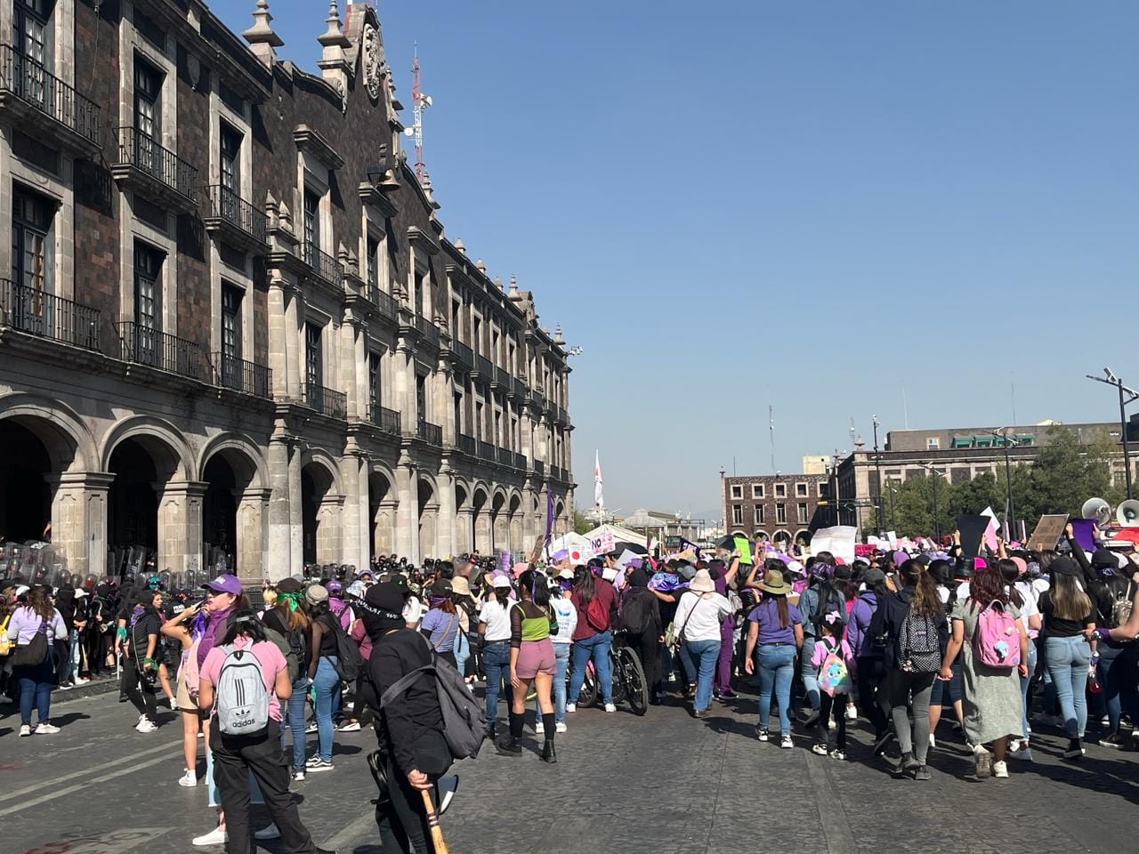 En su llegada al primer cuadro de la capital mexiquense se concentraron frente al palacio de gobierno estatal, donde insistieron en que se debe poner fin a la violencia que sufren, dar paso a la igualdad de condiciones y aprovecharon para llamar a las y los candidatos del proceso electoral 2024 a no usar el feminismo como bandera política para pedir el voto.