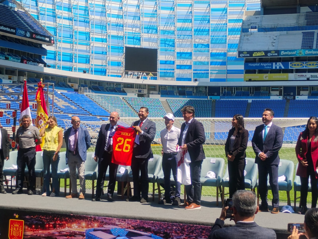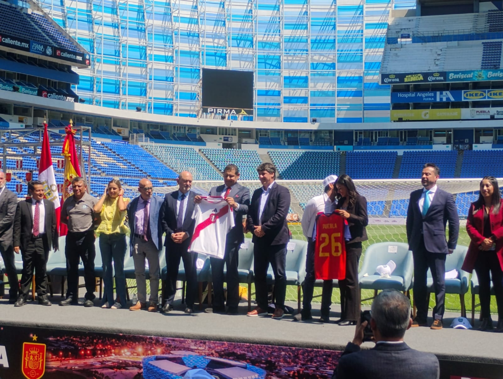 El gobernador del Estado, Alejando Armenta Mier, acompañado de Rafael Louzán, presidente de la Real Federación Española de Fútbol y del director general de la Federación Peruana de Futbol, Gianfranco Ferrari, encabezaron la presentación oficial del partido entre las Selecciones del Perú y España el próximo lunes 8 de noviembre en el estadio Cuauhtémoc, aún con horario y precios de los boletos por definir.