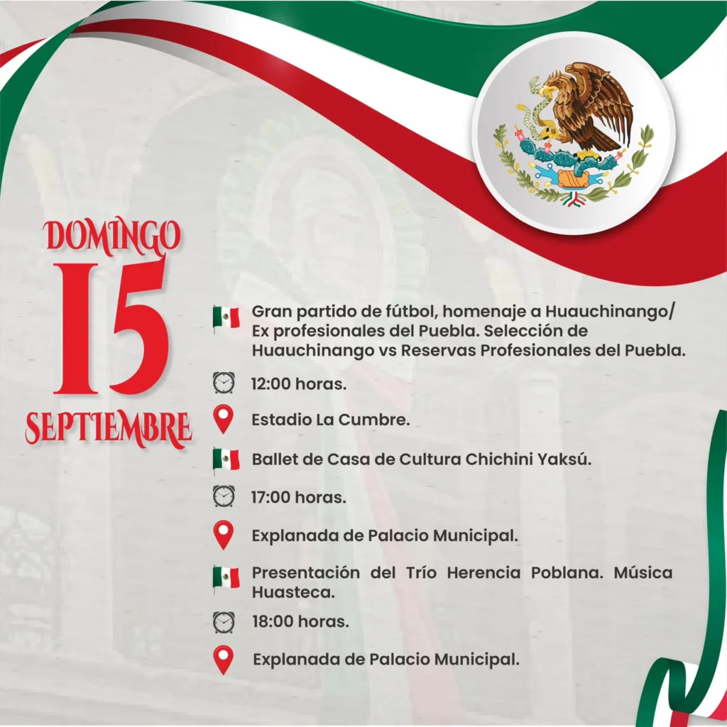 El Gobierno Municipal de Huauchinango ha anunciado un amplio y diverso programa de actividades para celebrar el 214º Aniversario de la Independencia de México.
