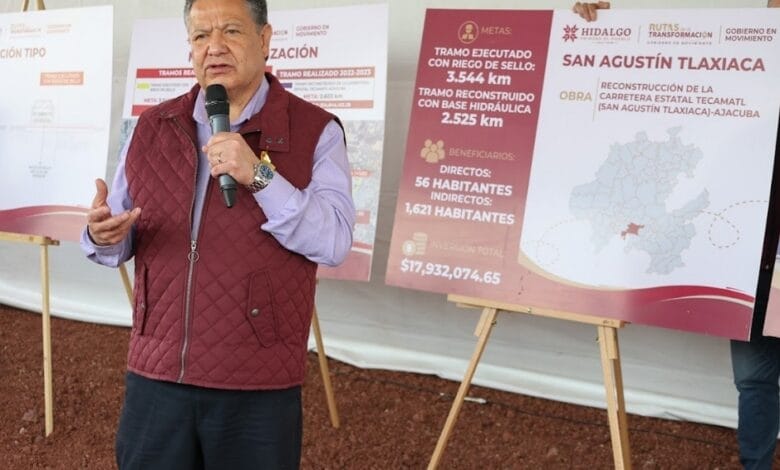 San Agustín Tlaxiaca, Hidalgo.- En el marco de las Rutas de la Transformación, el gobernador de Hidalgo, Julio Menchaca Salazar, encabezó la supervisión de la reconstrucción de la carretera estatal Tecamatl-Ajacuba, misma que se concluyó hace unos días, y en donde se aplicó un presupuesto de 17 millones 932 mil pesos.