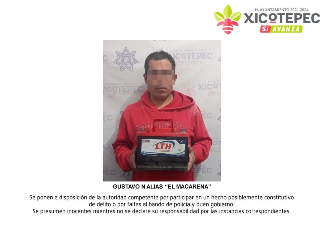 Gustavo “N” alias “El Macarena”, de 39 años, fue detenido por elementos de la Secretaría de Seguridad Pública y Tránsito Municipal de Xicotepec (SSPyTM) tras su presunta responsabilidad en la sustracción de una batería de automóvil, gracias a que fue señalado y ubicado mediante el uso de las cámaras de videovigilancia con inteligencia artificial, recientemente adquiridas por la administración que encabeza Lupita Vargas.