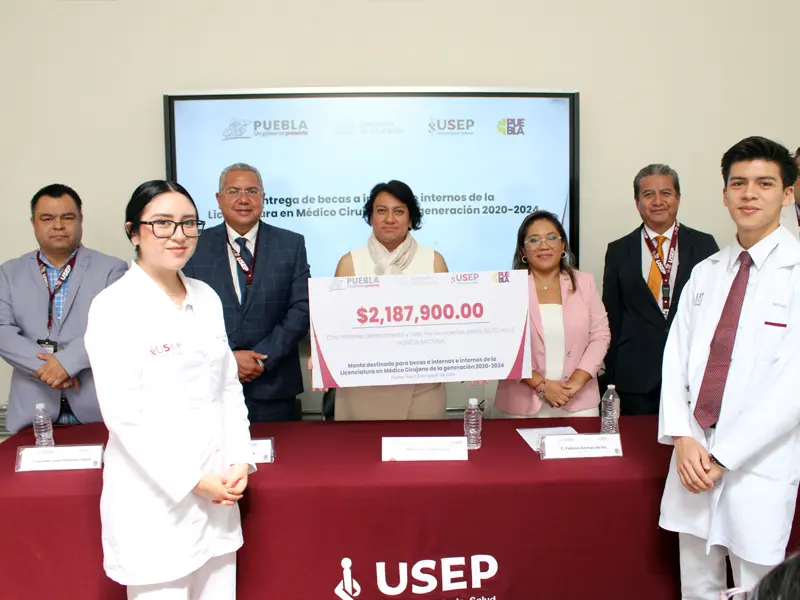 Como parte del compromiso del gobierno presente de Sergio Salomón para mejorar las condiciones de formación profesional de estudiantes de la Licenciatura en Médico Cirujano, a través de la Universidad de la Salud del Estado de Puebla (USEP), entregó becas a 190 jóvenes que realizan su internado médico de pregrado en diversos nosocomios del país.
