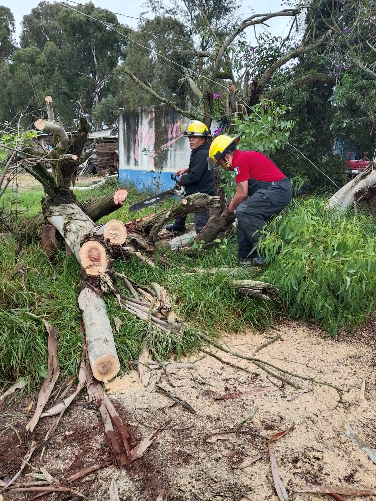 A través de la dirección de Protección Civil se mantienen recorridos en campo y se coteja el reporte de la caída de árboles en Huajomulco, a fin de prestar el apoyo necesario en caso de que estos maderables obstruyan el paso o requieren de seccionamiento, luego de caer.
