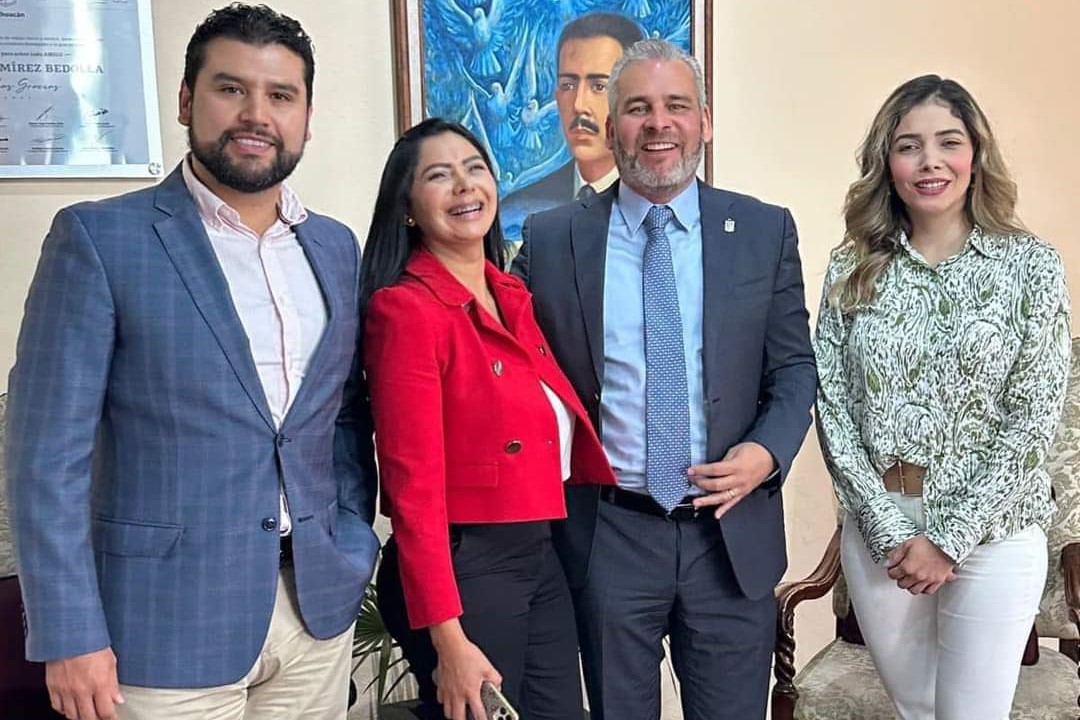 Morelia, Michoacán, a 27 de agosto de 2024.-Autoridades electas del Partido de la Revolución Democrática (PRD) sostuvieron un encuentro institucional con el gobernador del estado, Alfredo Ramírez Bedolla.