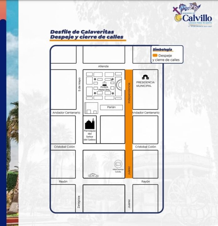 Se comunica a toda la población que, con motivo del tradicional Desfile de Calaveritas de preescolares, se llevará a cabo el despeje y cierre de la calle Juárez desde Rayón hasta Independencia, esquina con Allende. Este cierre iniciará el viernes 1 de noviembre a partir de las 6:00 AM.