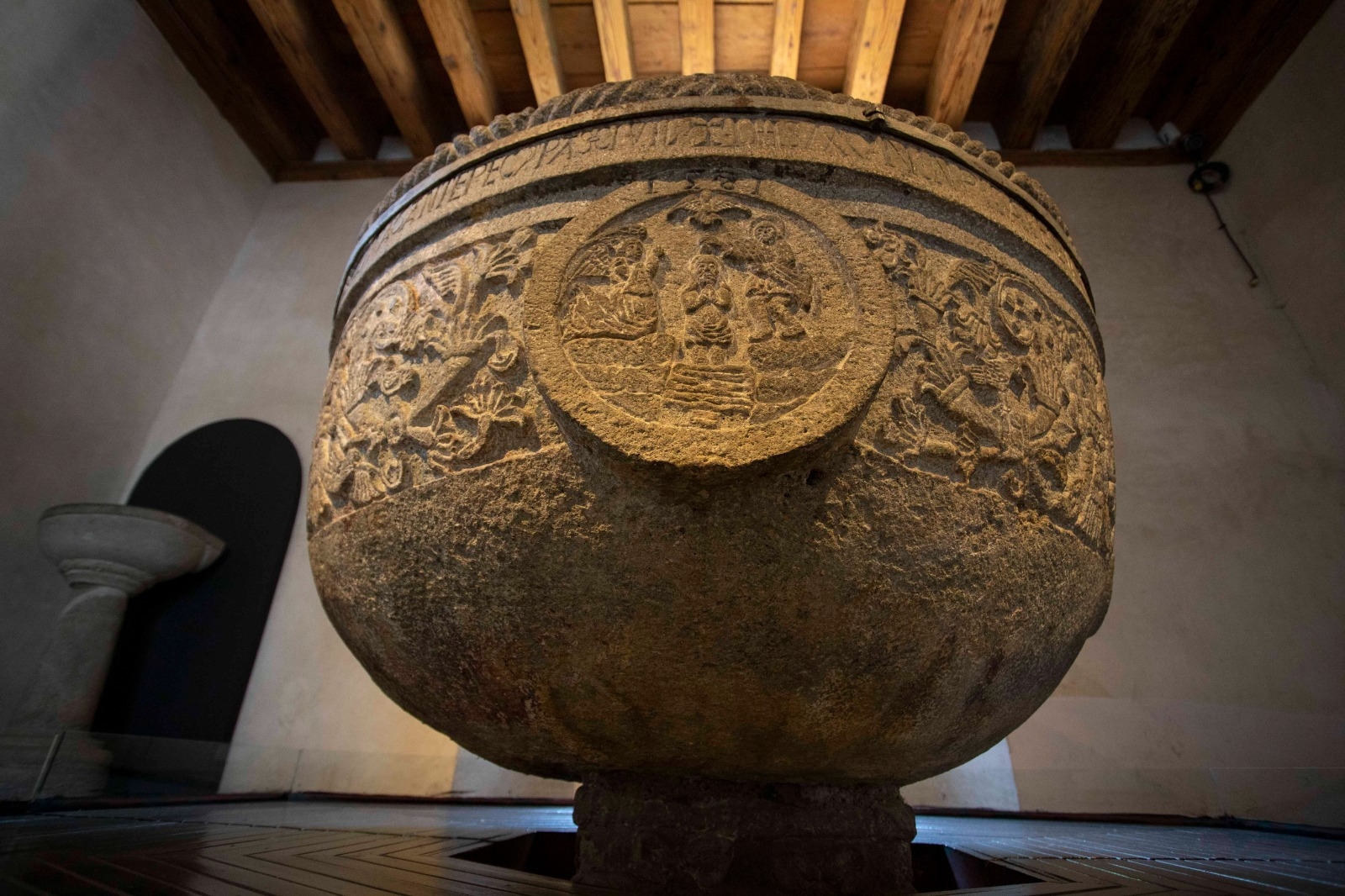 “Tenemos aquí en la Pila Bautismal cuatro medallones que están en diferentes puntos cardinales, en los cuatro puntos cardinales, en uno tenemos el bautismo de Jesús, en otro medallón tenemos la Anunciación de la Virgen, en un tercero, San Martín Caballero y en el cuarto, la lucha de San Miguel contra Luzbel”, agregó.