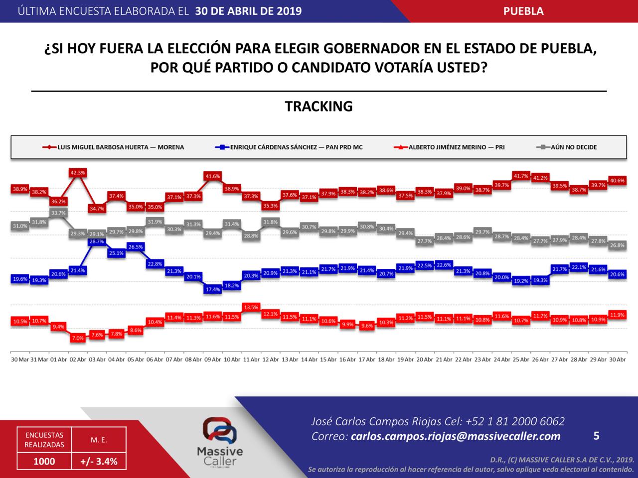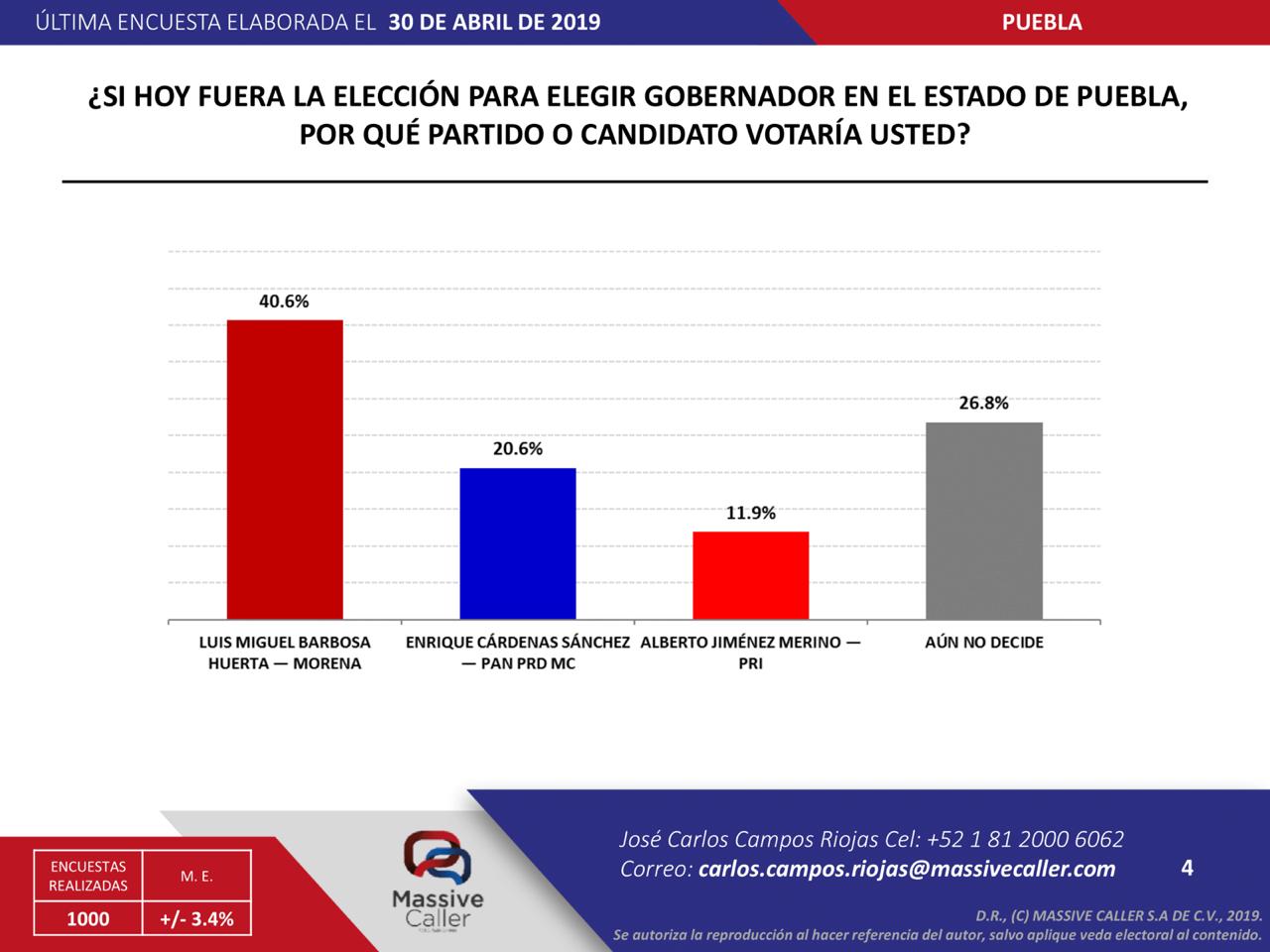 Abajo se muestran los resultados de la encuesta realizada por Massive Caller sobre las Elecciones de Puebla 2019