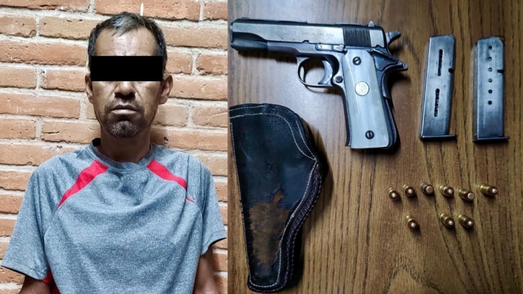 En consecuencia, policías estatales detectaron que el masculino portaba una pistola, tipo escuadra, calibre .380, dos cargadores y nueve cartuchos útiles.