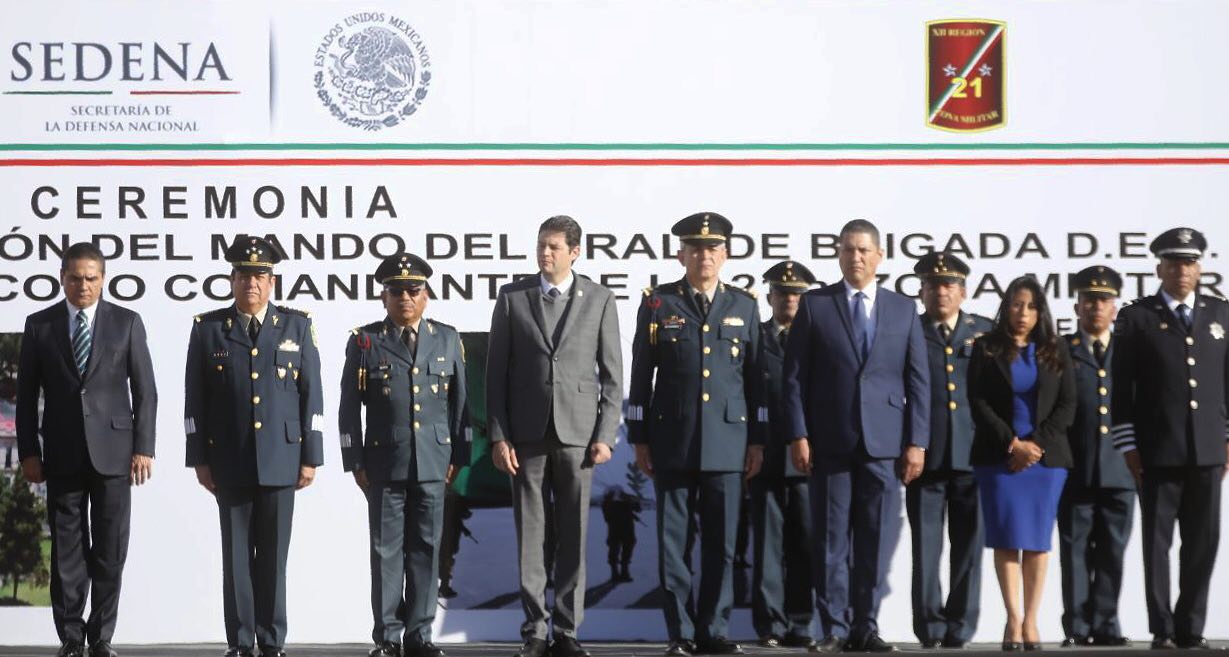 El Presidente Municipal de Morelia, Alfonso Martínez Alcázar, refrendó el compromiso de trabajar de forma coordinada por la seguridad de los ciudadanos, al acudir a la toma de protesta, posesión y de bandera de Gerardo Mérida Sánchez, como Comandante de la 21/a Zona Militar con sede en la capital del Estado.
