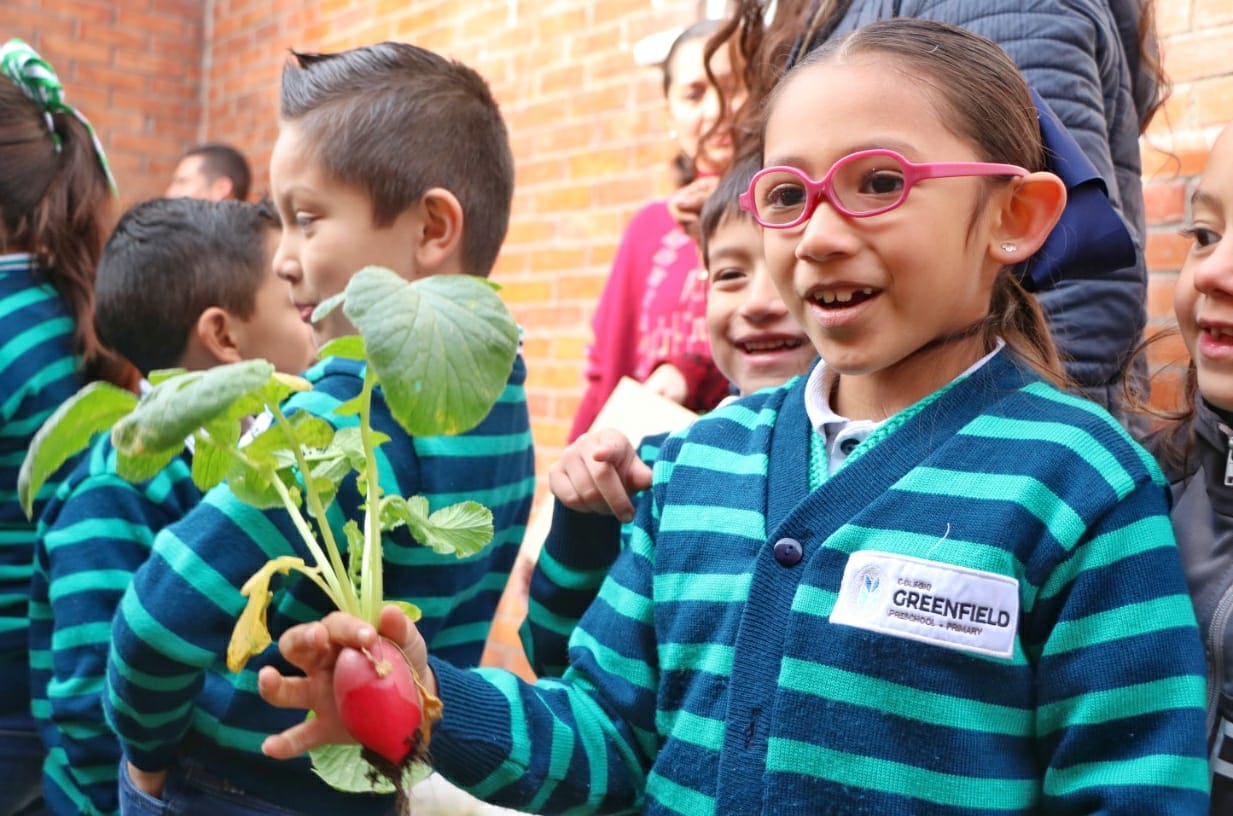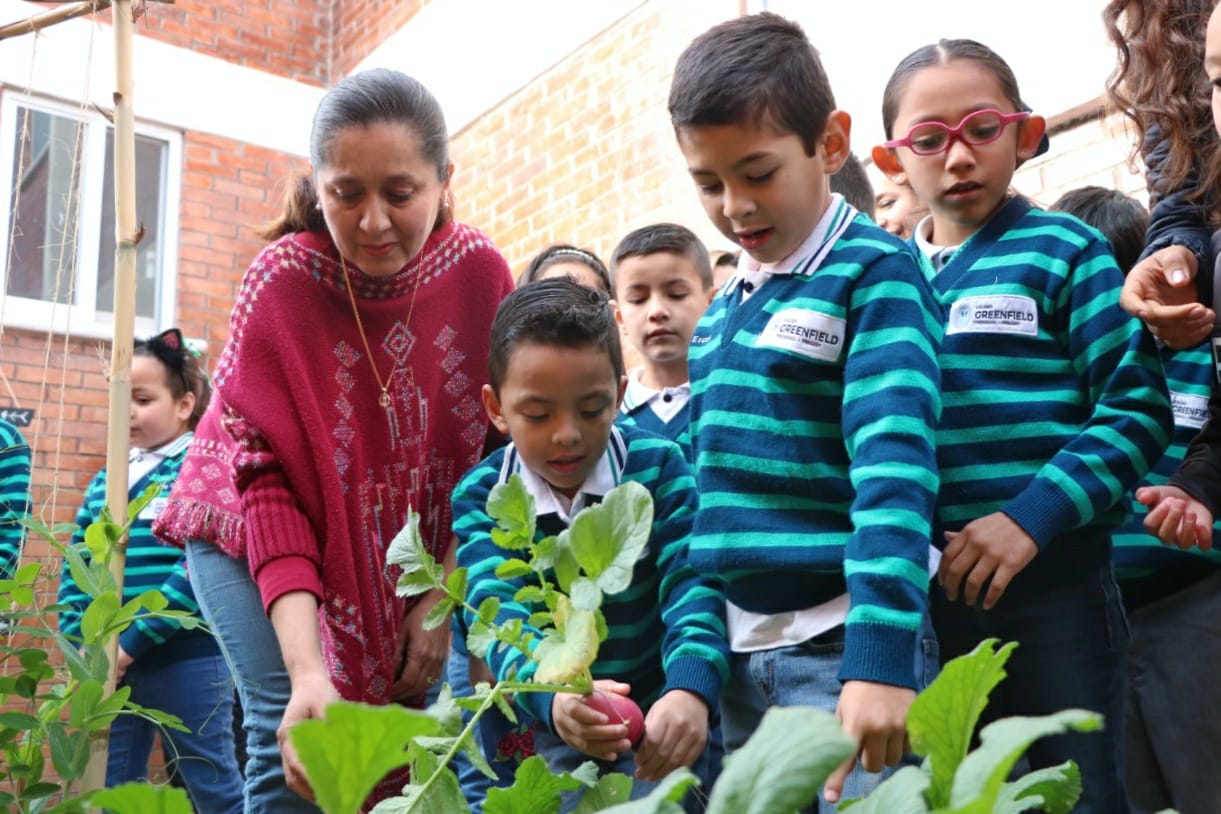 La presidenta del DIF Municipal, Liliana Coronado de Arámbula, encabezo la primera cosecha del huerto productivo del Colegio Greenfield, que los alumnos cultivaron y manifesto que la tierra nos da vida, alimento y nos ayuda a crecer.