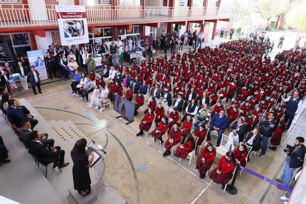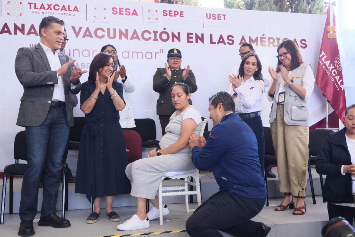 En las instalaciones de la primaria “Educación y Patria”, en el municipio de Tlaxcala, la titular del Ejecutivo destacó la importancia de que, por primera vez en la entidad, se aplicará la vacuna contra el Virus Sincitial Respiratorio (VSR) dirigida a mujeres embarazadas, con el propósito de proteger a los recién nacidos desde sus primeros meses de vida, reduciendo riesgos de enfermedades respiratorias graves.