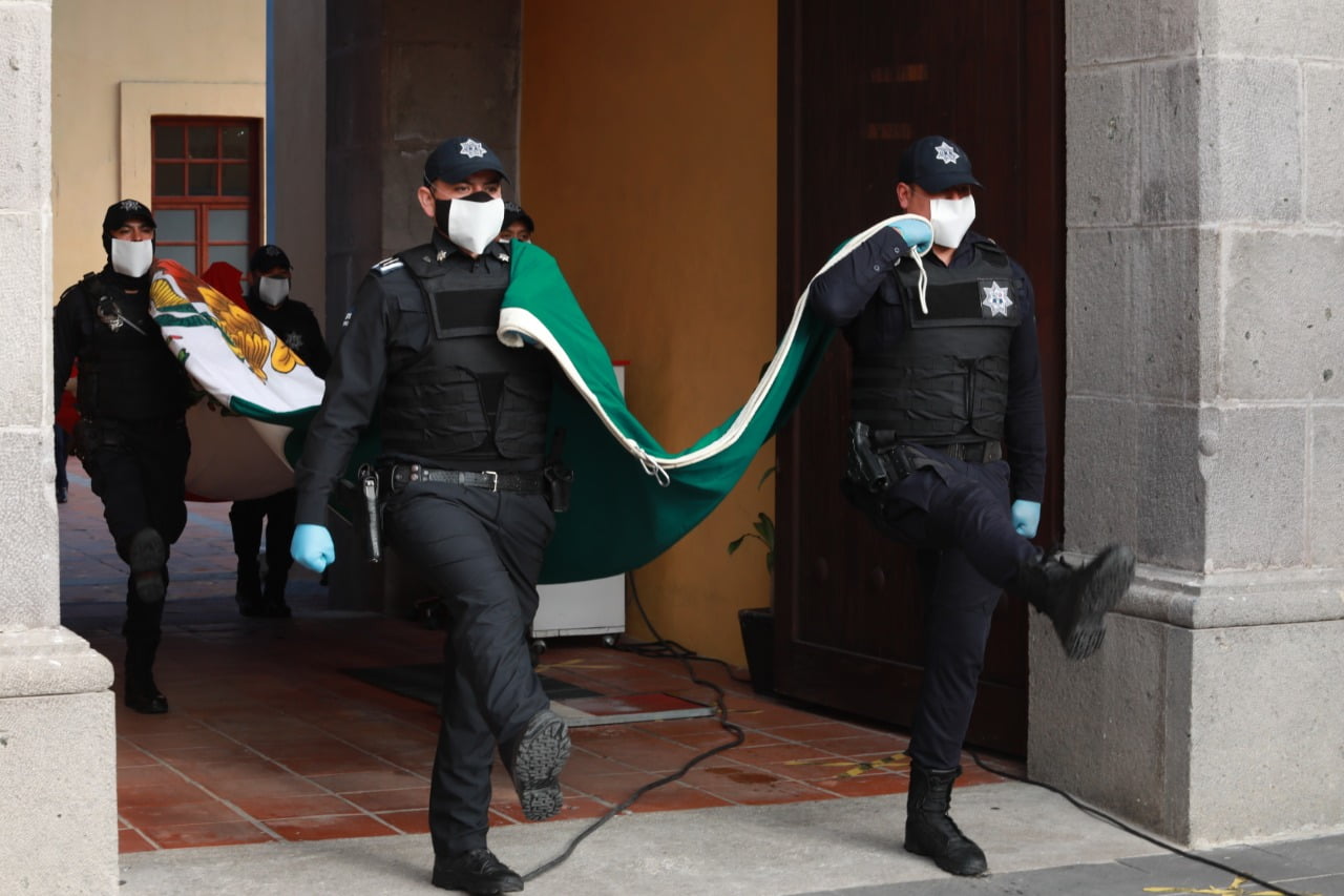 Como parte del inicio de los festejos del mes patrio, la presidenta municipal, Karina Pérez Popoca, encabezó la primera ceremonia de honores a la bandera durante la cual realizó la develación del Bando Solemne 2020 para la Conmemoración de los CCX años del inicio de la Independencia de México.
