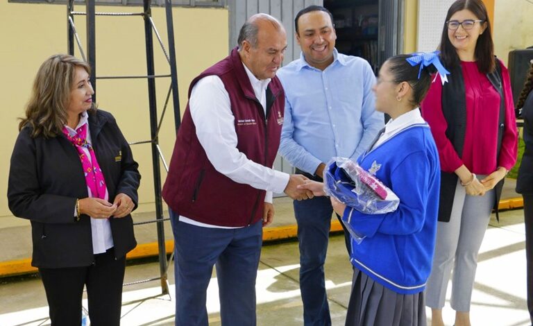 Posteriormente, el titular del IHE realizó un recorrido por la Escuela Primaria “Justo Sierra” del municipio de Metepec, en donde también entregó uniformes y zapatos escolares, tras lo cual convivió con estudiantes, docentes y padres de familia.