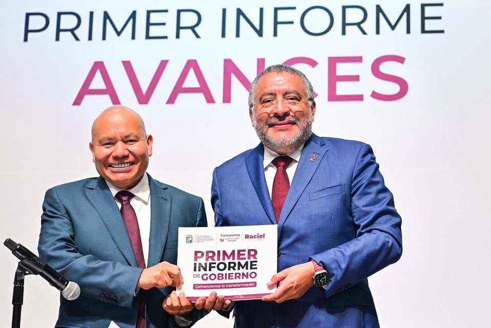 “Los quiero invitar a que mañana nos acompañen en el Zócalo de la Ciudad de México a festejar 7 años de transformación, a respaldar con claridad a la Presidenta porque ninguna difamación, ningún ataque, ninguna misoginia podrá con un pueblo valiente como el pueblo de México, como el pueblo del Estado de México”, dijo Duarte Olivares durante el Primer Informe de Gobierno de Raciel Pérez Cruz, Presidente Municipal de Tlalnepantla.