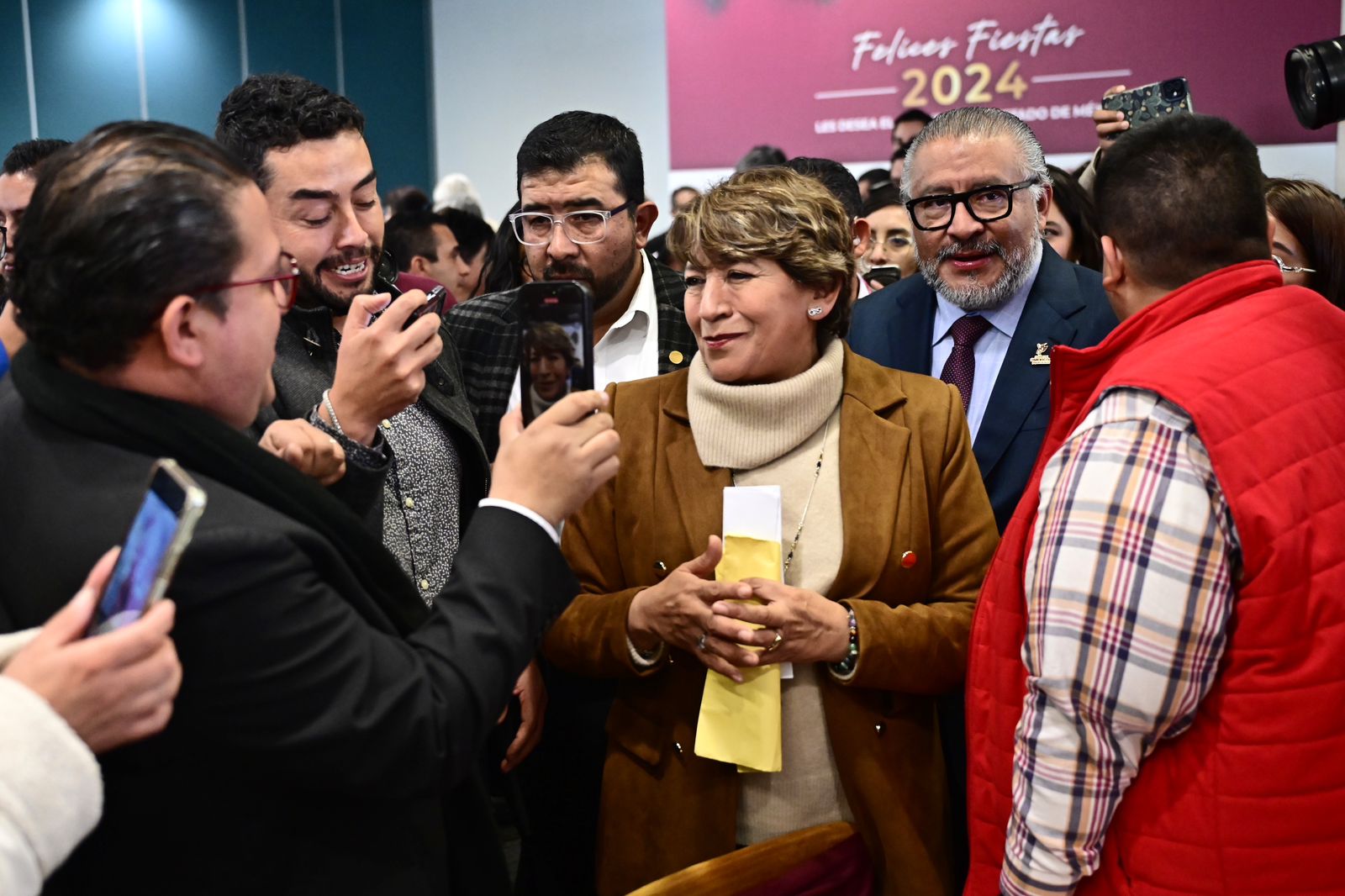 La Gobernadora del Estado de México, Delfina Gómez Álvarez se reunió con un centenar de representantes de los medios de comunicación de toda la entidad, para reconocer su labor y contribución social al informar sobre la acciones que se realizan en beneficio de la población.