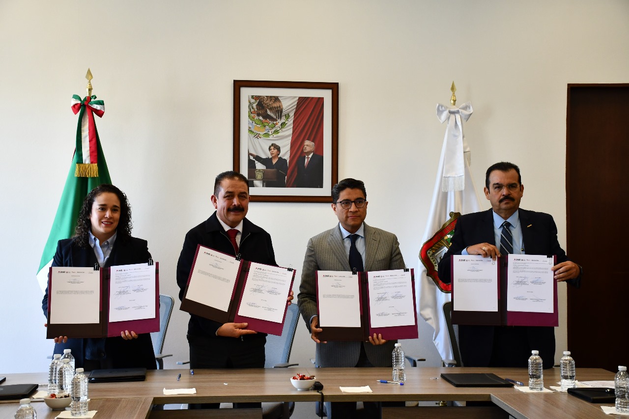En la firma del convenio estuvieron presentes, además de Rubio Sánchez, Amalia Pulido, Consejera Presidenta del IEEM; Miguel Ángel Hernández, Secretario de Educación, Ciencia, Tecnología e Innovación, y Jesús George Zamora, Consejero Jurídico del Gobierno del Estado de México.