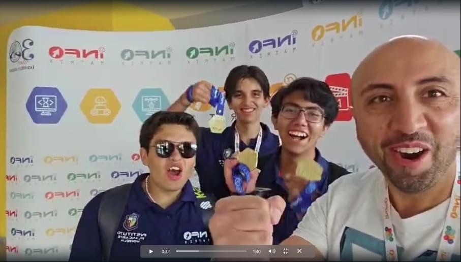 André Benjamín Becerril Rieder, Ángel Ernesto Franco Campos y Tadeo Alfaro Paniagua, estudiantes de preparatoria del Instituto Plancarte de Morelia triunfaron en Rumania al llevarse el oro en el concurso internacional Infomatrix World 2024.