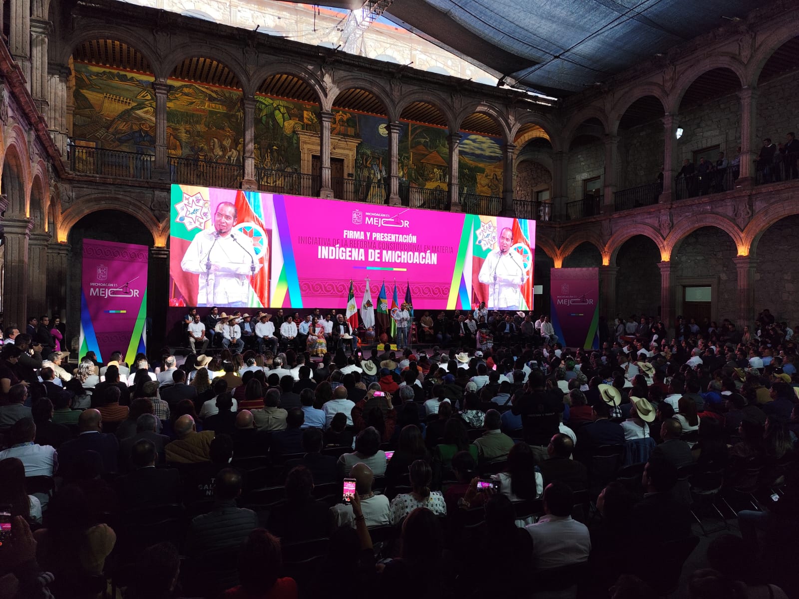 El líder del Consejo Supremo Indígena de Michoacán (CSIM), Pavel Ulianov Guzmán, en su participación retomó el mensaje que ha venido manifestando desde hace tiempo, donde resalta que la cuestión de los autogobiernos actuales no es sino la reivindicación de los derechos de las comunidades originarias.