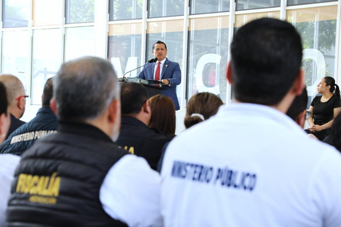 Con el objetivo de consolidar un servicio más eficiente, transparente y cercano a la ciudadanía, el Fiscal General del Estado de Michoacán, Carlos Torres Piña, encabezó la entrega de 300 equipos de cómputo a diversas áreas sustantivas y administrativas de la institución, como parte de la estrategia para modernizar el equipamiento tecnológico y garantizar una mejor atención a víctimas.