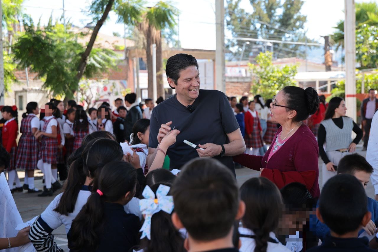 El Presidente de Morelia, Alfonso Martínez Alcázar, fue recibido con alegría por cientos de alumnas, alumnos y directivos de la escuela primaria Benito Juárez en la colonia Sindurio, a quienes comprometió la construcción de una cancha deportiva dentro del plantel escolar.