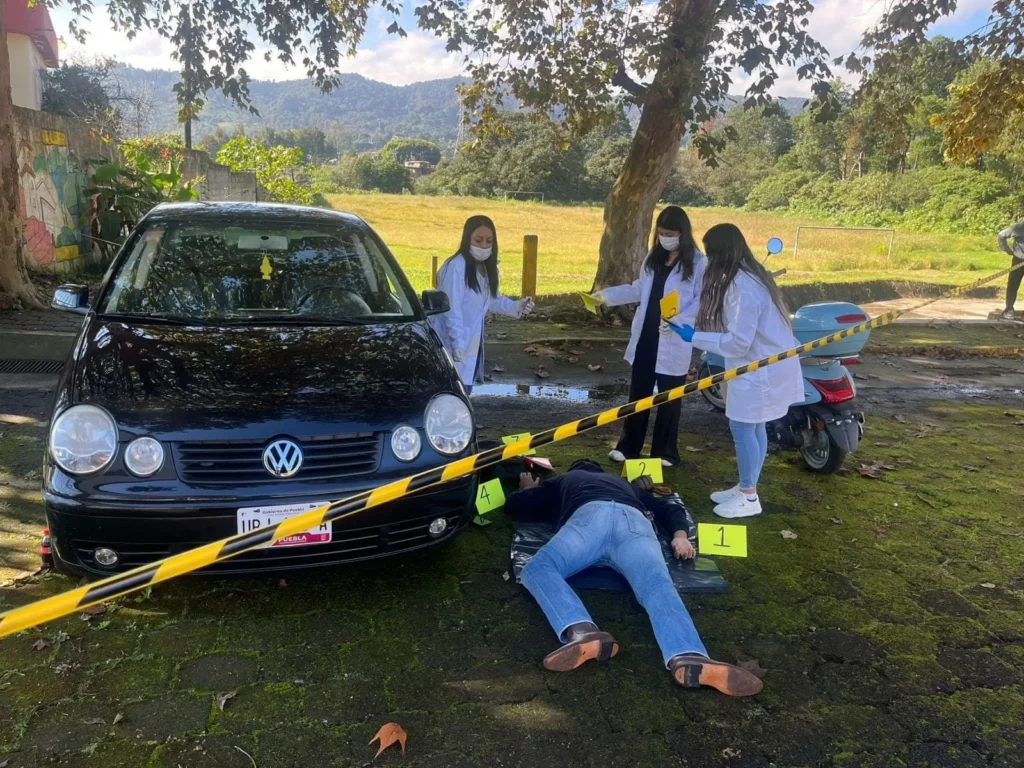 El día de ayer alumnos del 3° semestre de la Licenciatura en Derecho, realizaron prácticas de levantamiento de cadáver, en la materia de Derecho Penal, por lo cual se montó una escena y se realizó el protocolo de investigación y levantamiento del cadáver.