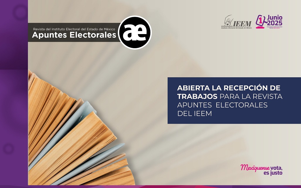 El Instituto Electoral del Estado de México (IEEM), a través de su Centro de Formación y Documentación Electoral (CFDE), invita a la comunidad académica, investigadora y especialista en temas político-electorales a participar en la convocatoria para publicar en el número 73 de la revista Apuntes Electorales. La recepción de textos estará abierta hasta el 15 de agosto de 2025, a las 23:59 horas.