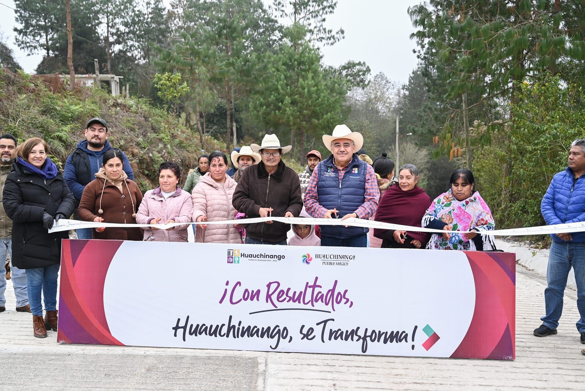 El alcalde de Huauchinango Rogelio López Angulo llevó a cabo la inauguración de la obra de pavimentación con concreto hidráulico, en el acceso principal a la comunidad de El Mirador.