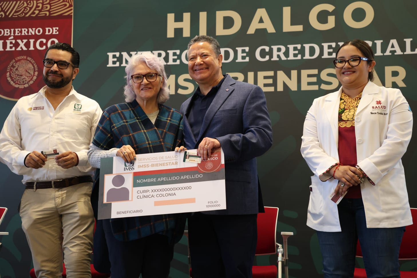 Autoridades federales y estatales realizaron entrega a beneficiarios del sistema IMSS Bienestar las credenciales con las que podrán recibir atención médica y medicamentos de manera gratuita.