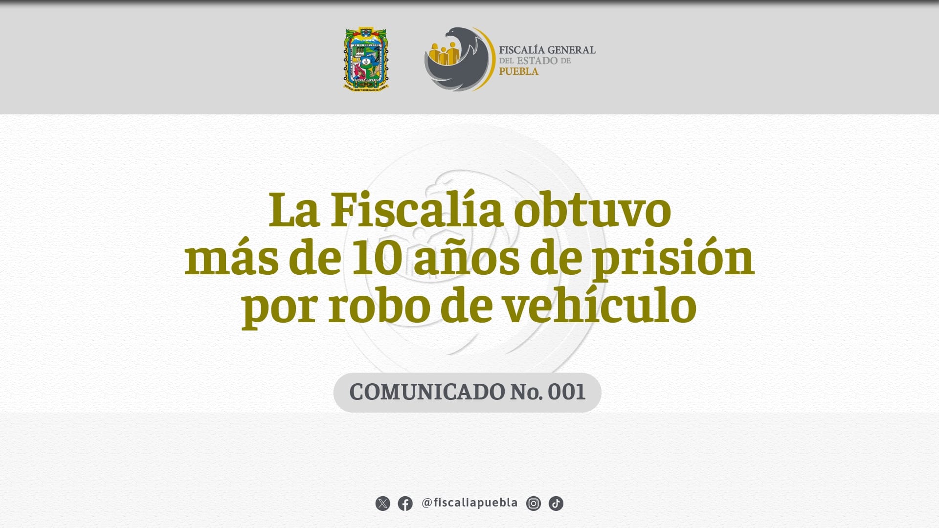 La Fiscalía General del Estado de Puebla obtuvo sentencia de más de 10 años de prisión contra Antonio N. penalmente responsable del delito de robo de vehículo calificado.