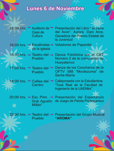 Durante la semana del 3 al 9 de noviembre se llevarán a cabo actividades y eventos culturales imperdibles en Texcaltitlán