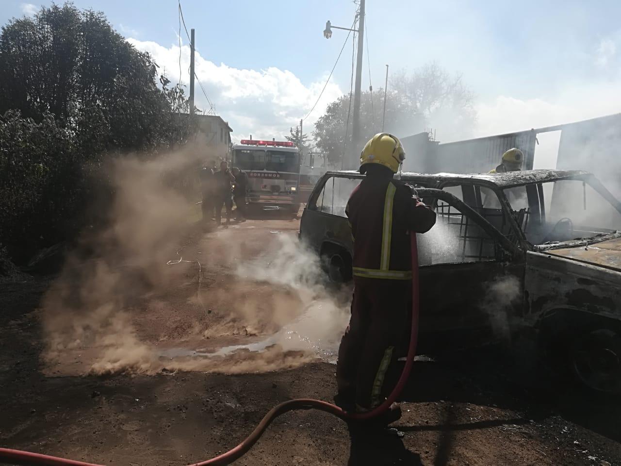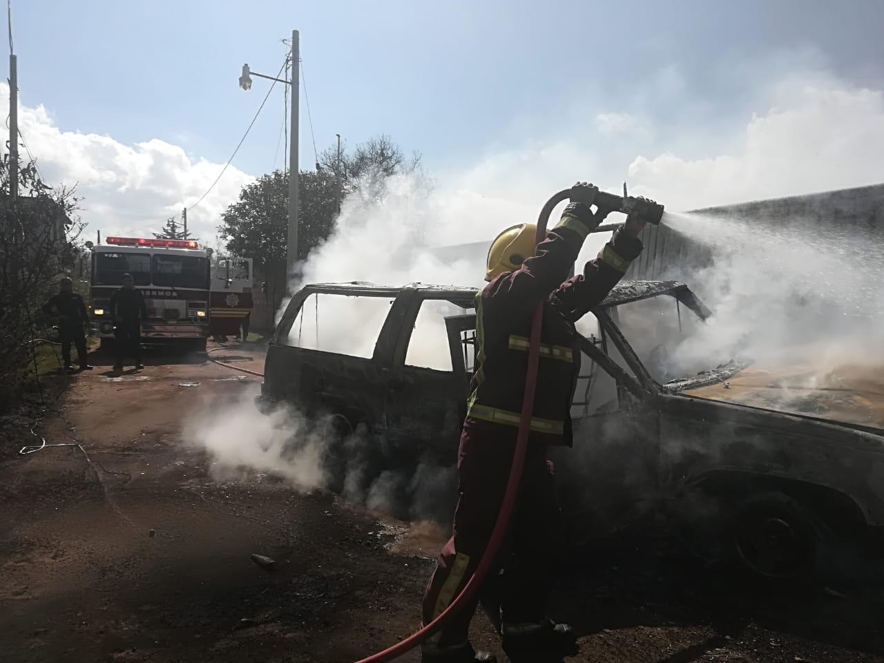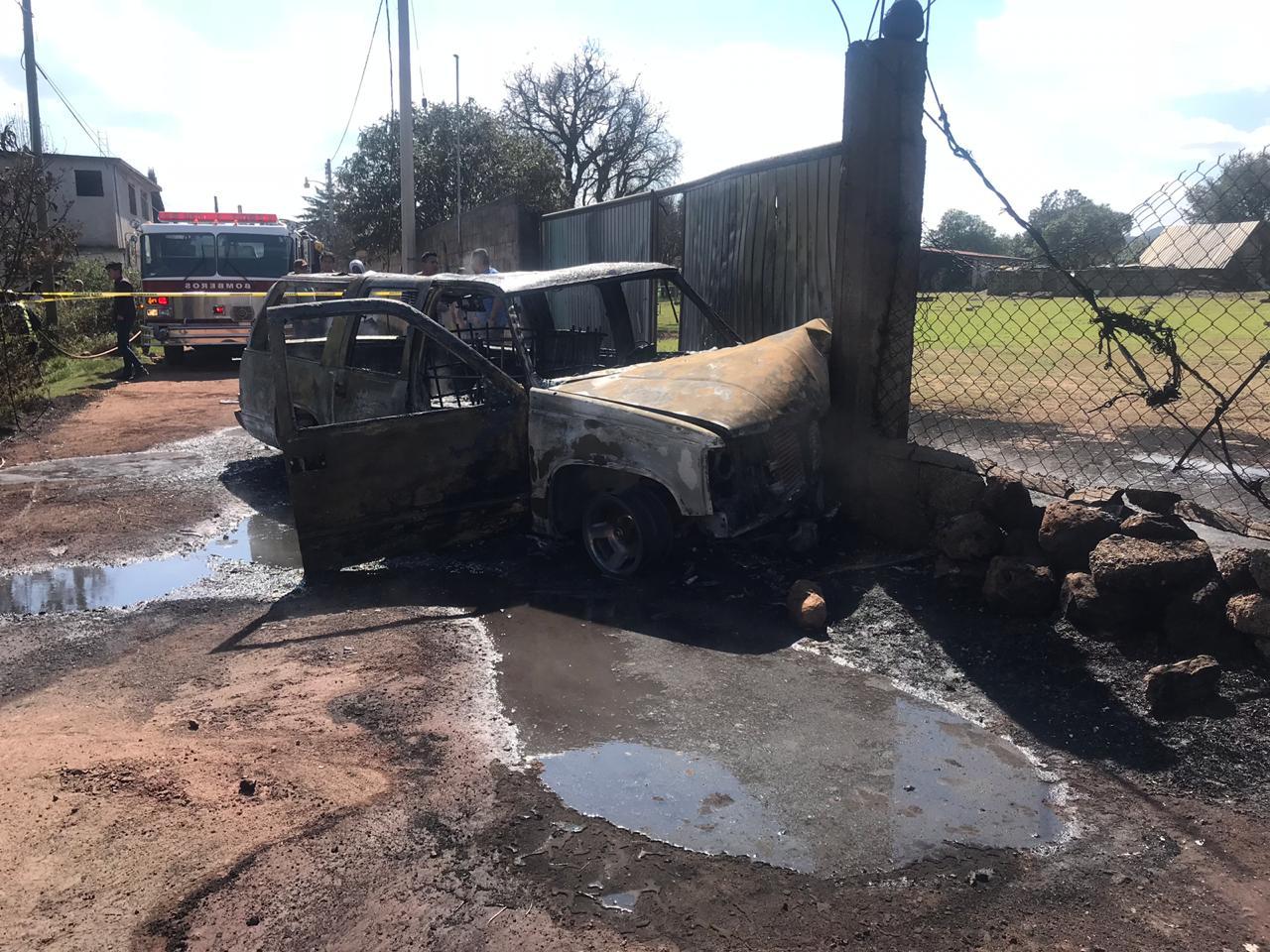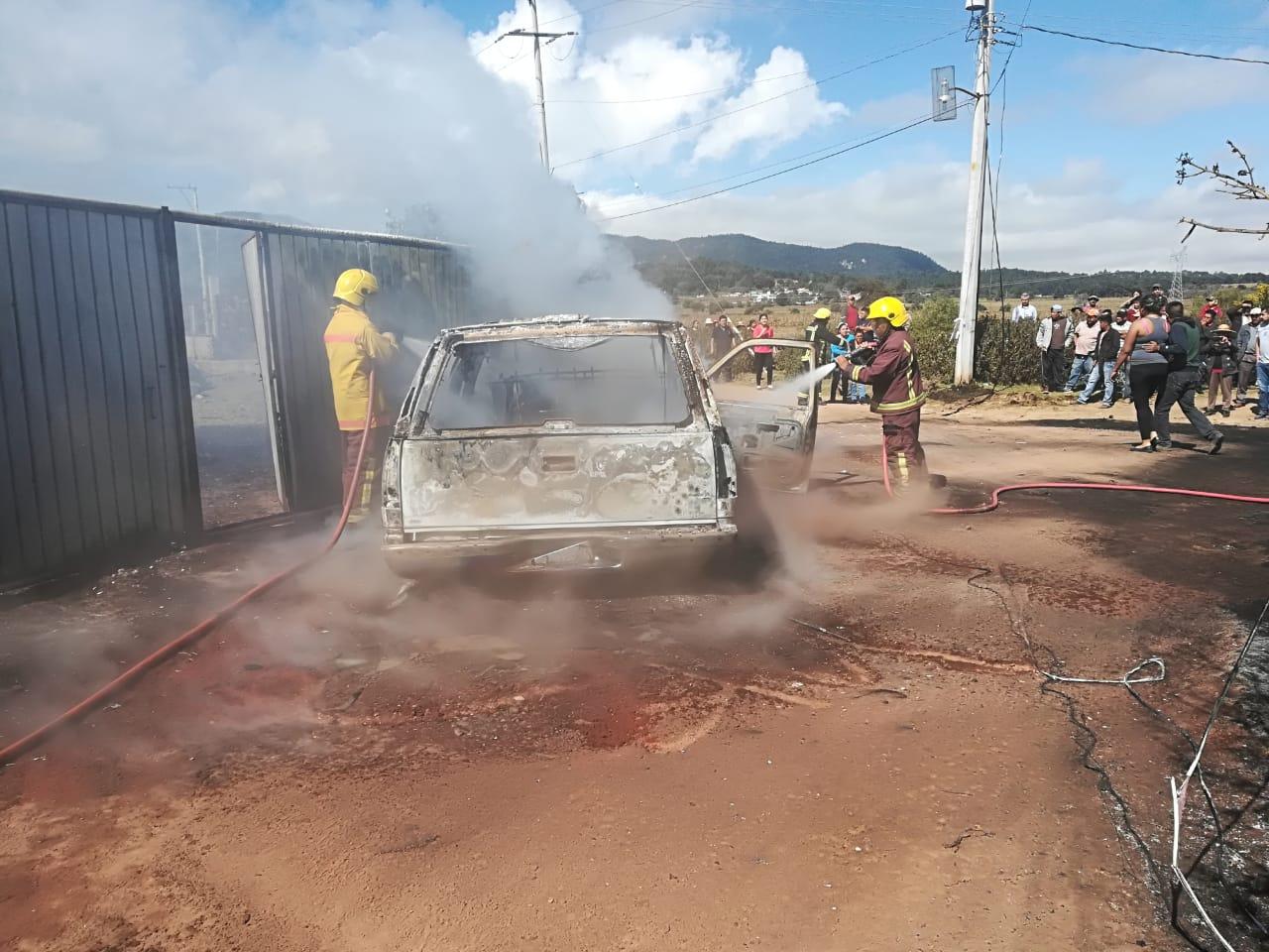 Bomberos de Tulancingo trabajaron para sofocar el incendio y evitar su propagación hacia otras zonas de esta comunidad, y además corroboraron que el conductor ya no contaba con signos vitales.