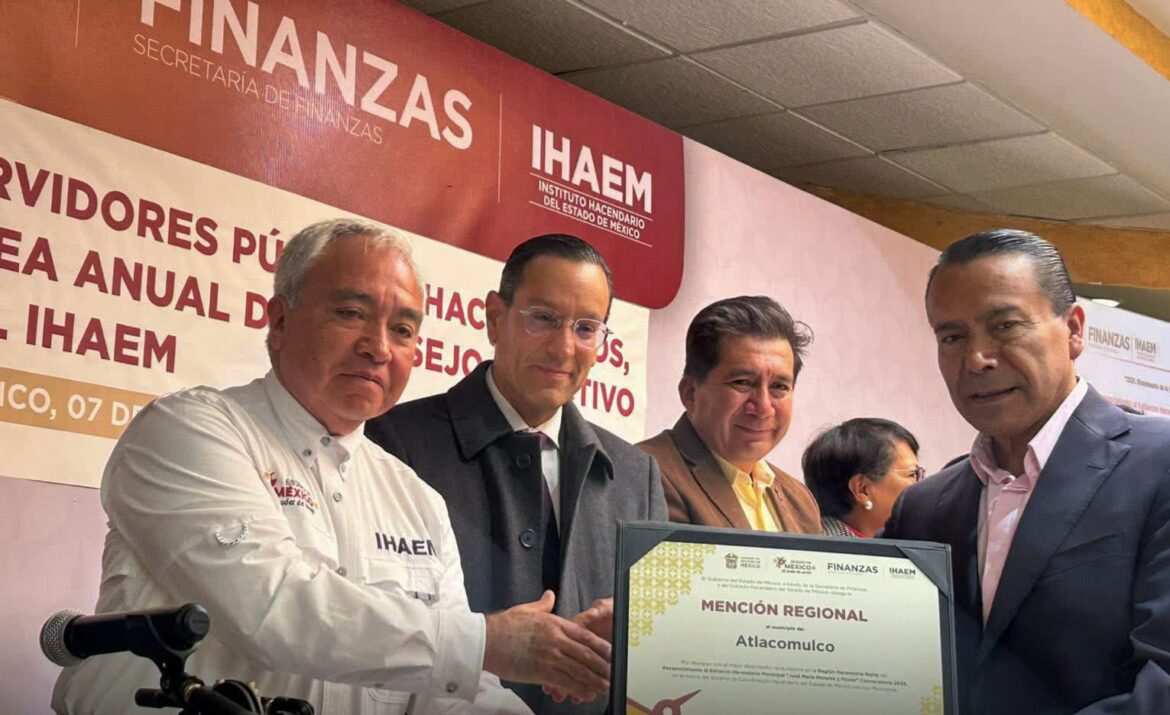 El presidente municipal de Atlacomulco Nicolás Martínez Romero recibió el reconocimiento al Esfuerzo Hacendario Municipal “José María Morelos y Pavón”, otorgado por el Instituto Hacendario del Estado de México (IHAEM), por alcanzar el mejor desempeño recaudatorio en la Región Hacendaria Norte.