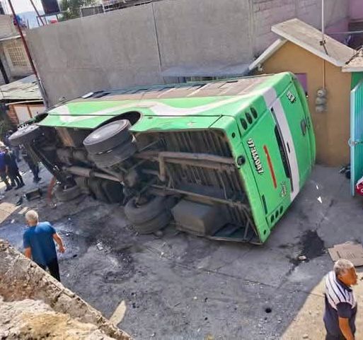 El conductor, al llegar a la Cerrada de Danubio, no logró controlar el vehículo, lo que provocó que se estrellara contra una banqueta y volcara sobre su costado derecho. El autobús cayó desde una pendiente de casi 10 metros en una zona habitacional.