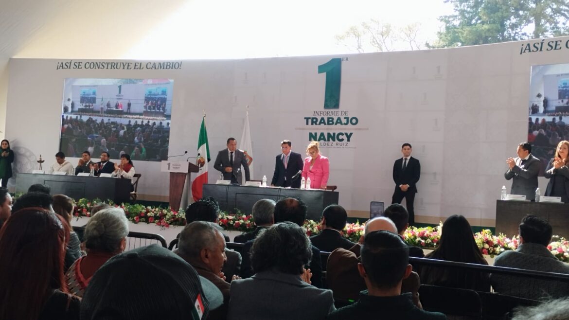 En la Unidad Deportiva Luis Camarena González, la alcaldesa de Ocoyoacac, Nancy Valdez Ruiz, presentó su Primer Informe de Trabajo, donde destacó avances en infraestructura deportiva, educación innovadora, seguridad, salud, medio ambiente y cultura, además de reconocer el trabajo conjunto con autoridades estatales y federales.