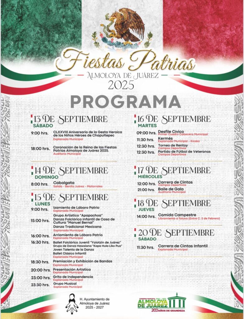Almoloya de Juárez vivirá sus fiestas patrias con una agenda que combina tradición, cultura y música, en la que se espera la llegada de más de 50 mil visitantes y una derrama económica de hasta 50 millones de pesos.