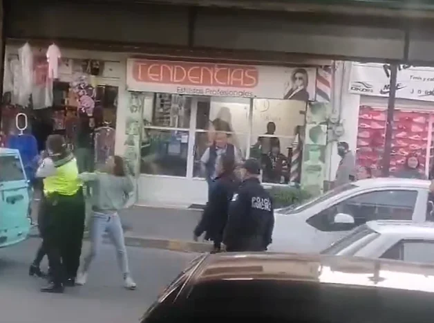 En el lugar, los policías nuevamente invitaron a los integrantes del vehículo a bajarse, siendo dos personas del sexo femenino, una de ellas aparentemente menor de edad, quienes desciende de la parte trasera y empiezan a agredir a la oficial de tránsito de manera verbal y física, sumándose a la riña una tercera persona, derivando en el intercambio de golpes que se detuvo hasta que llegó el apoyo de más elementos para controlar la situación.