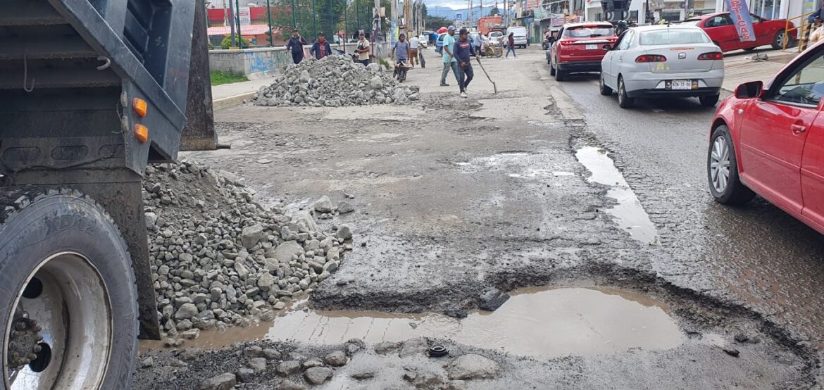 Con la finalidad de mejorar las condiciones de algunas vías de comunicación por las que circulan, empresas de transporte público se encuentran tapando baches y emparejando algunas calles con recursos propios.