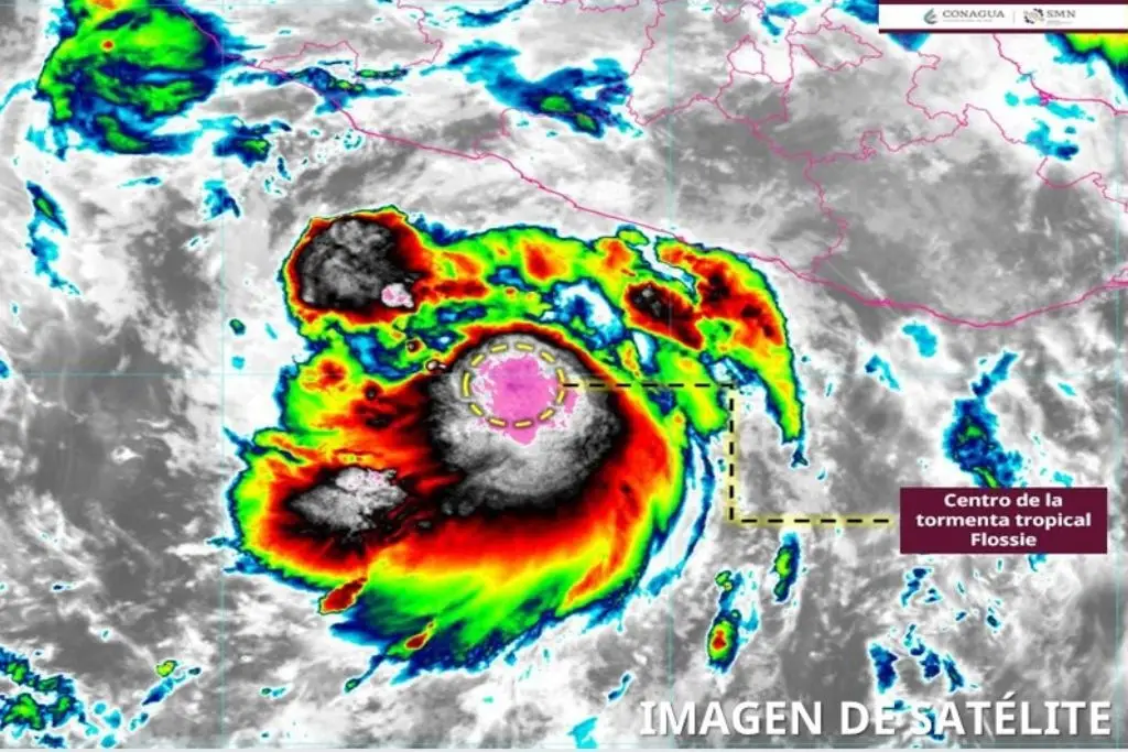 De acuerdo con el Servicio Meteorológico Nacional (SMN), el centro de la tormenta tropical Flossie se localiza a 255 km al sur-suroeste de Zihuatanejo, Gro., y a 420 km al sur-sureste de Manzanillo, Col. Presenta vientos máximos sostenidos de 95 km/h, rachas de 110 km/h y desplazamiento hacia el noroeste a 17 km/h.
