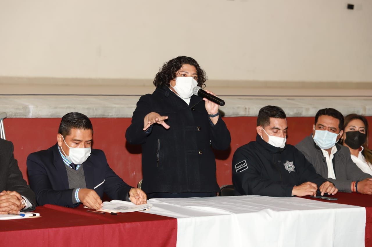 La presidenta municipal, Karina Pérez Popoca, encabezó la asamblea comunitaria para dar a conocer los resultados obtenidos de la encuesta informativa para la conformación de la Delegación Municipal de la Reserva Territorial.
