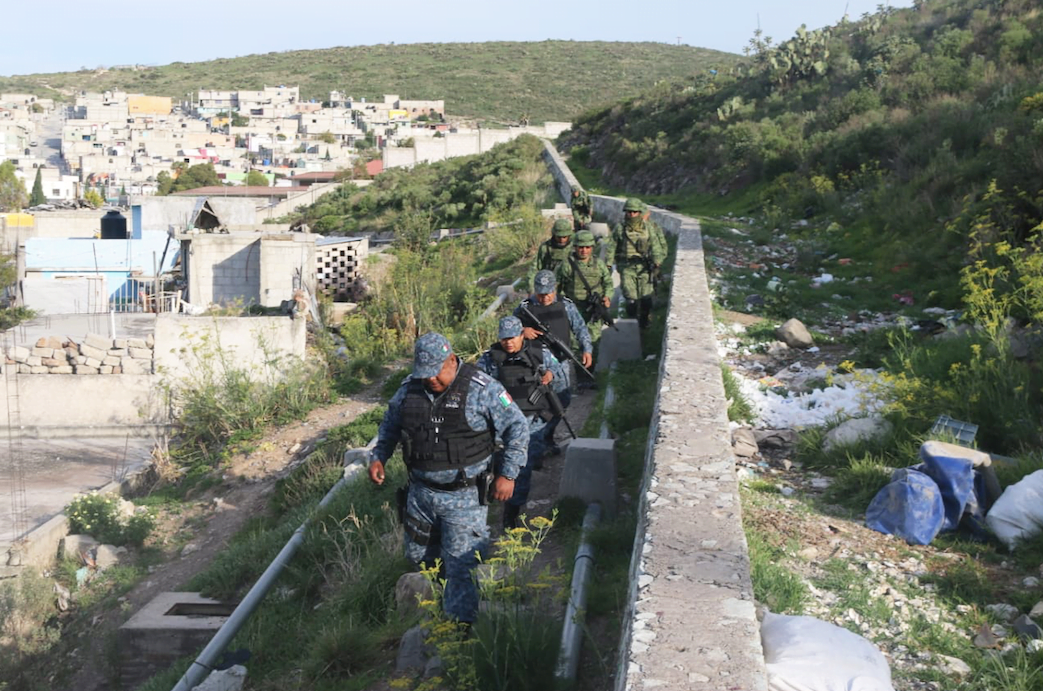 La Fuerza Especial Conjunta refuerza la estrategia Hidalgo Seguro, que contempla más de 10 mil cámaras de videovigilancia, 38 arcos carreteros, 20 drones, un avión sigiloso, más de 350 unidades radiopatrulla y la construcción de un moderno C5i.