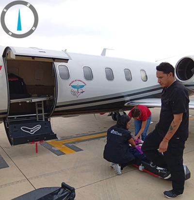 El traslado inició en ambulancia desde el hospital hasta el Aeropuerto Internacional Felipe Ángeles, donde la menor fue acompañada durante todo el vuelo por un equipo médico especializado.
