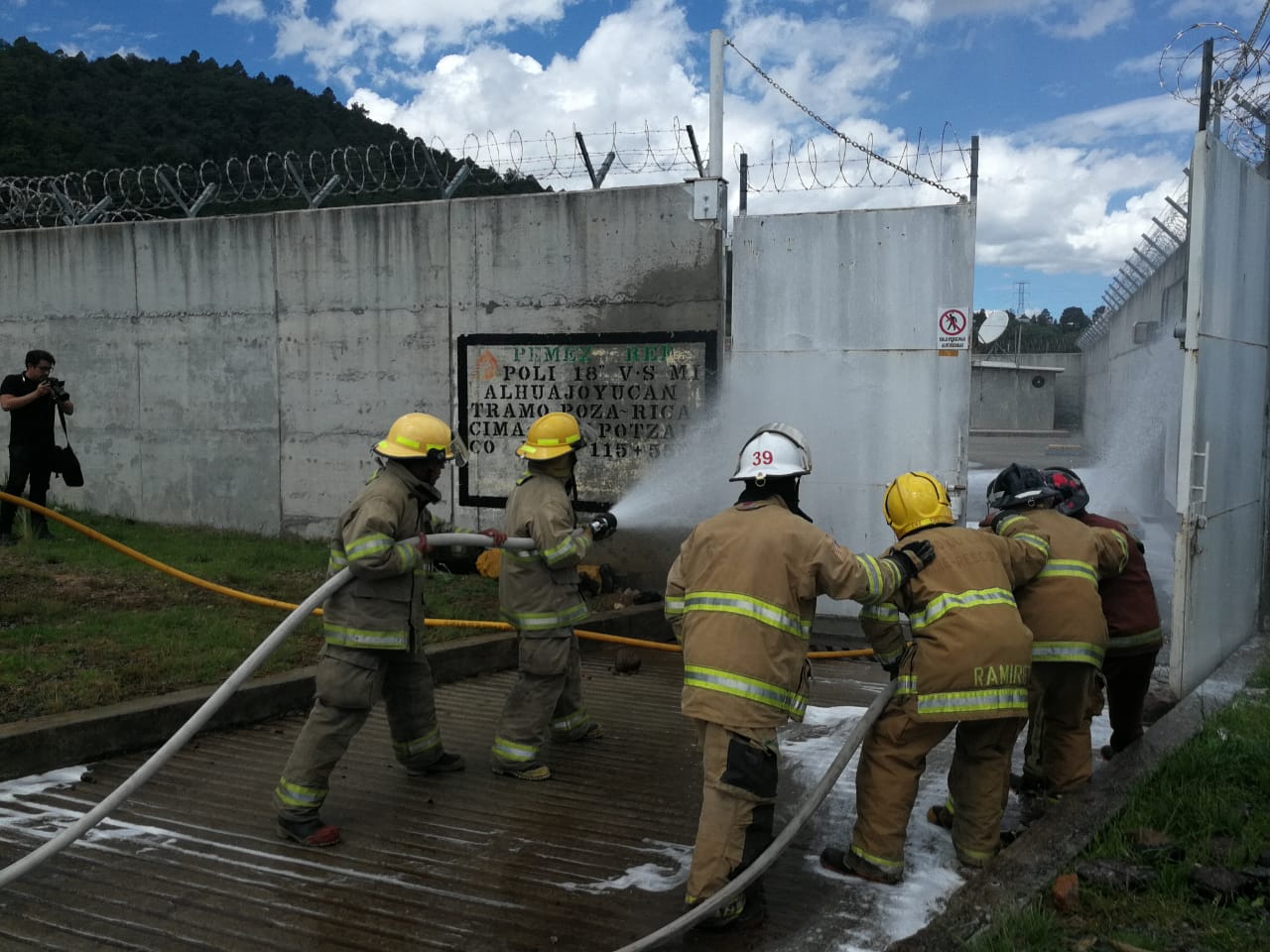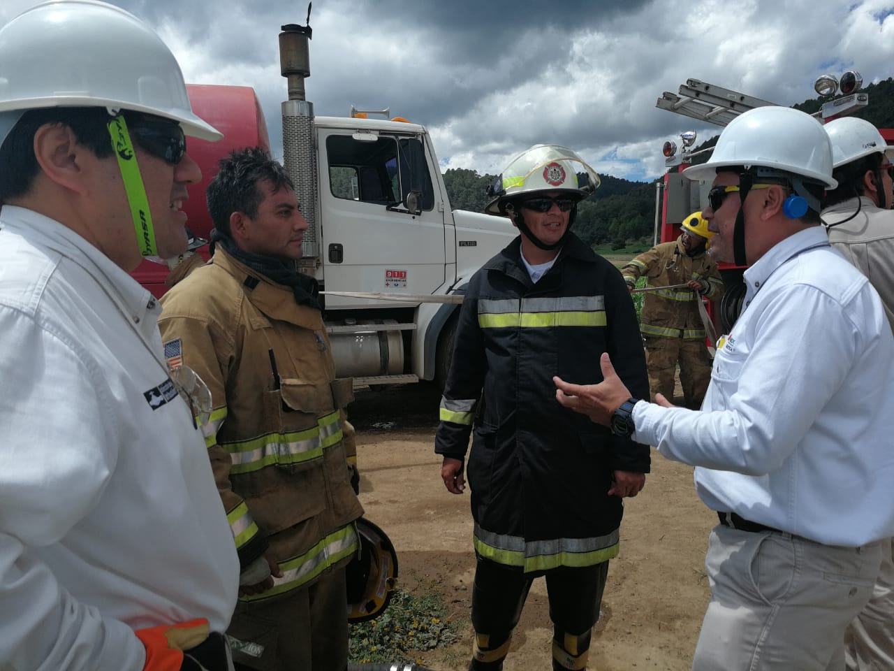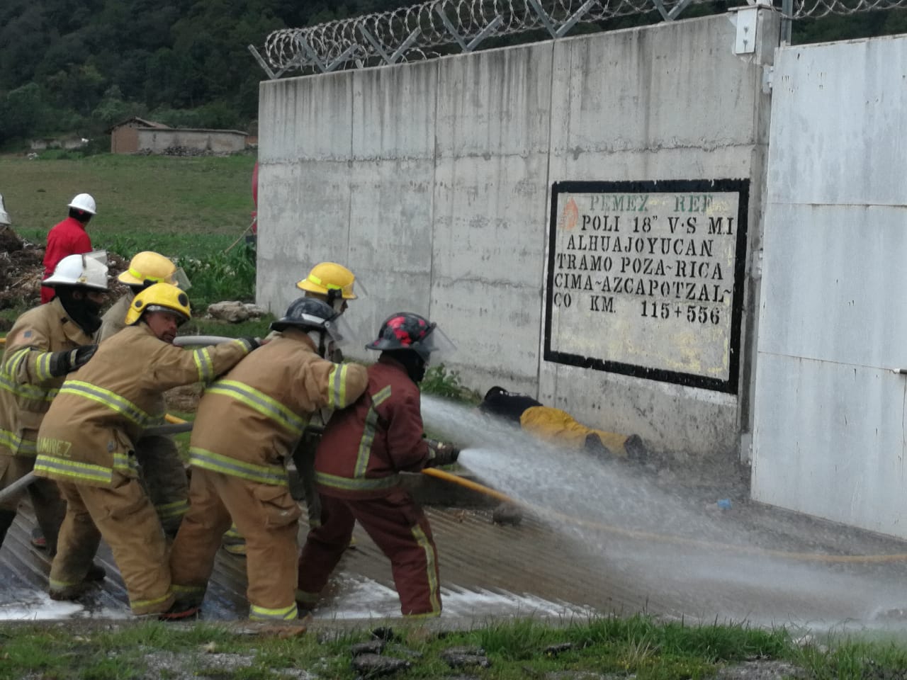 En los hechos simulados, se reportó mediante una llamada telefónica realizada al 911, C4 a la Dirección de Bomberos y Protección Civil de Cuautepec, el incendio de hidrocarburo en la comunidad de Alhuajoyucan.