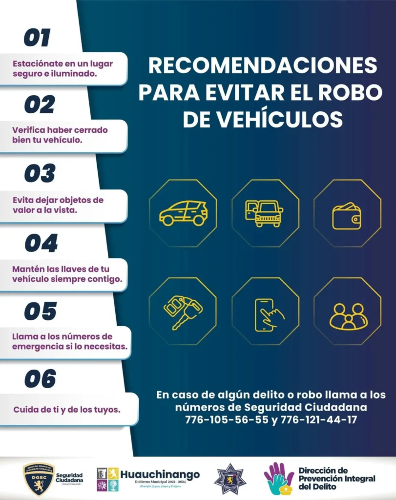 Para reportar cualquier delito o robo, comunícate con Seguridad Ciudadana al 776 105 56 55 o al 776 121 44 17.
