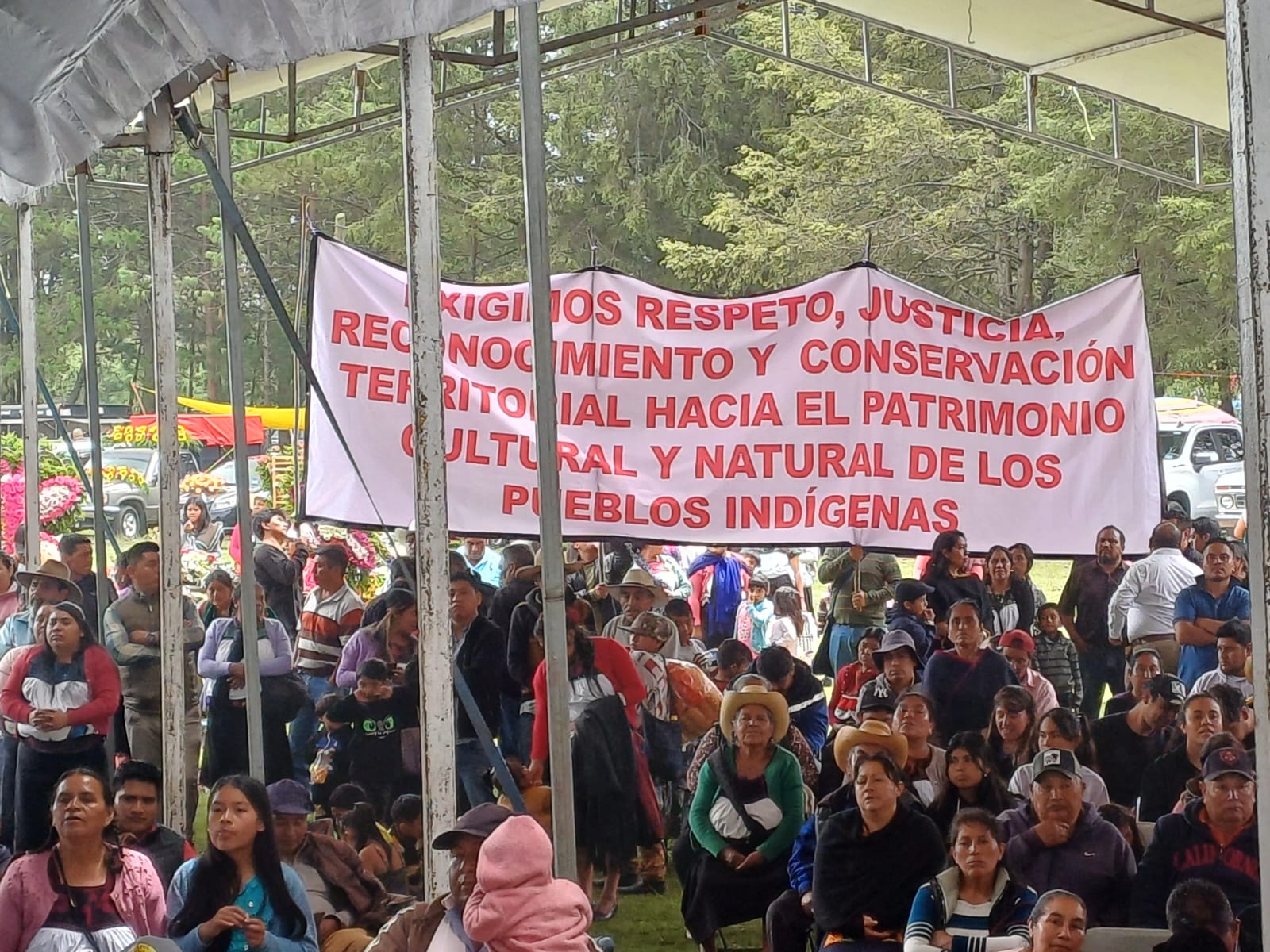 “Exigimos respeto, justicia, reconocimiento y conservación territorial hacia el patrimonio cultural y natural de los pueblos indígenas”, se leía en dicha manta.