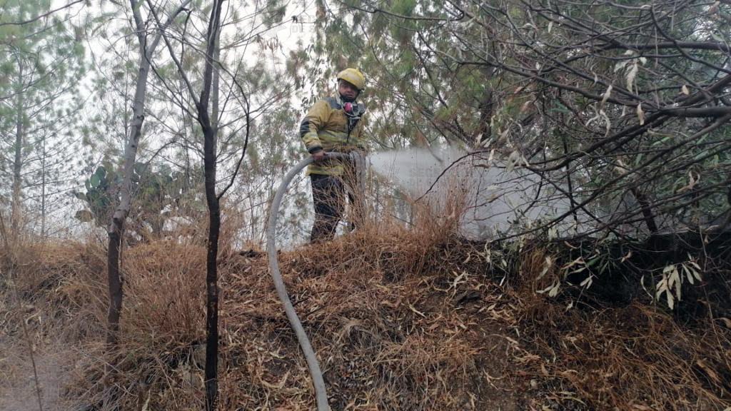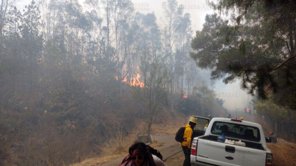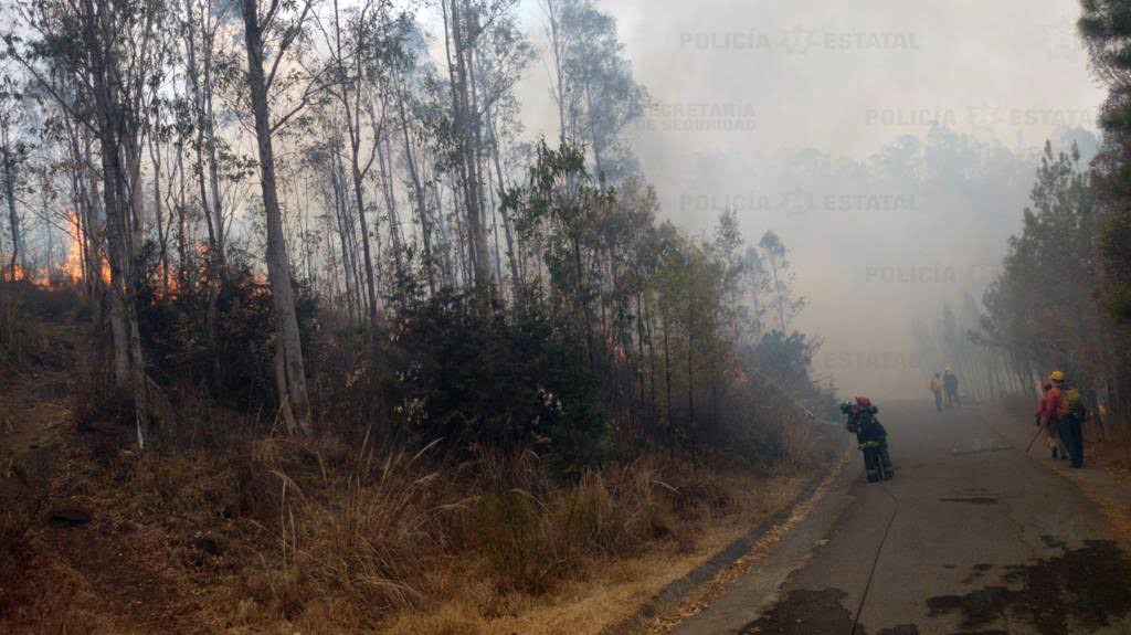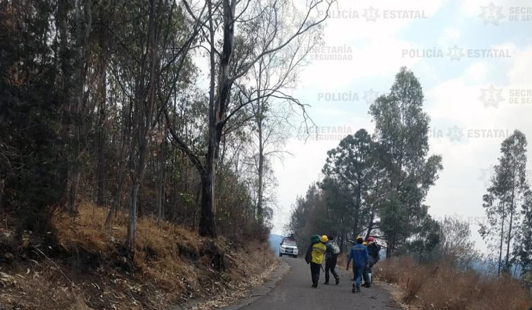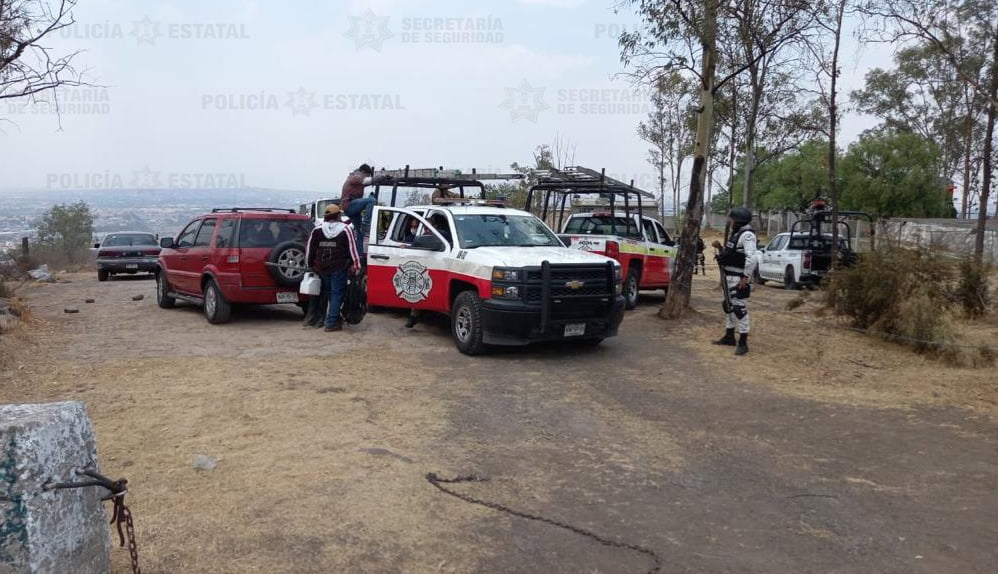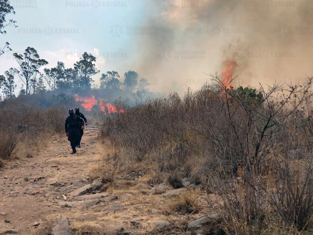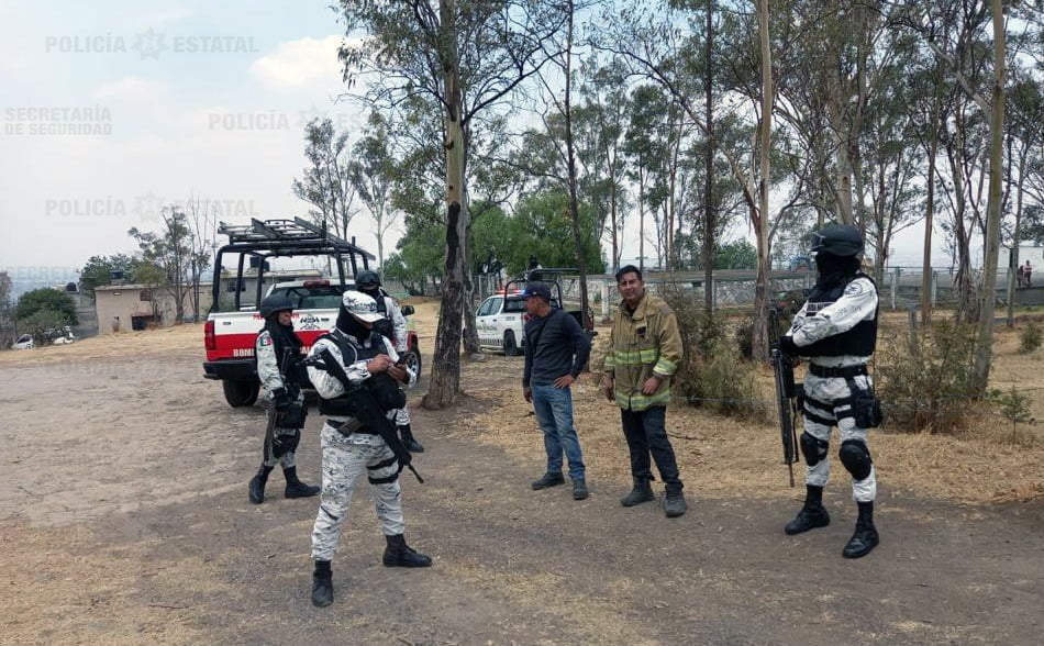 Con el objetivo de evitar riesgos a la población, elementos de la Secretaría de Seguridad (SS) en coordinación con la Guardia Nacional (GN) y Policía Municipal, resguardan zona de incendio registrado en el Parque Estatal Sierra de Guadalupe, área natural protegida en la entidad.