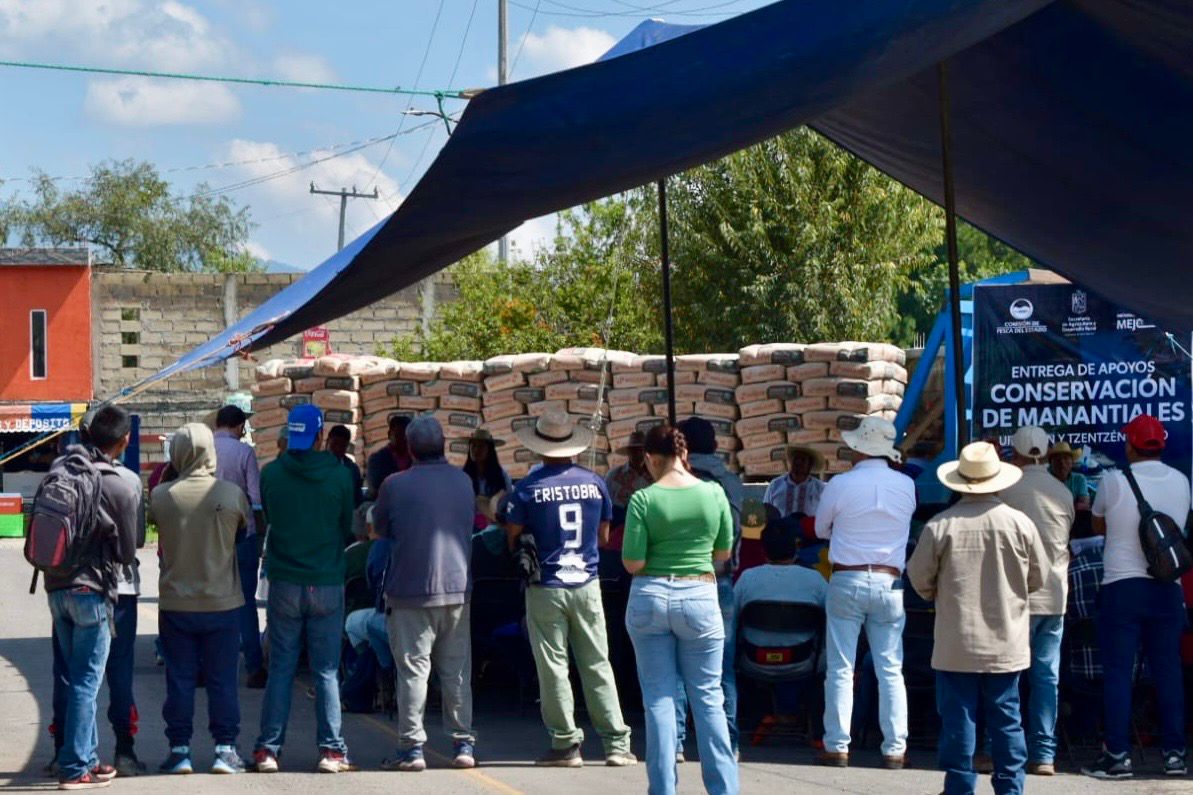 La Secretaría de Agricultura y Desarrollo Rural, a través del programa Obras por Cooperación realizó la entrega de 45 toneladas de cemento a las comunidades de Urandén y Tzentzénguaro, con la finalidad de coadyuvar a la rehabilitación de sus manantiales.