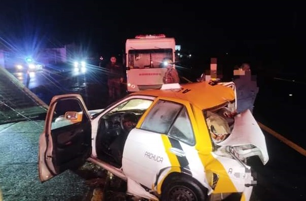 El accidente se registró a la altura del kilómetro 15, donde una de las personas quedó prensada dentro del taxi, cuyos ocupantes de milagro salvaron la vida.Cuerpos de emergencia del estado, Epazoyucan y Zempoala se movilizaron al lugar y realizaron las labores de primeros auxilios y el rescate de la persona atrapada.Todos los lesionados fueron trasladados a hospitales de Pachuca en ambulancias de la Cruz Roja delegación Zempoala y protección civil de Epazoyucan.Del hecho de tránsito se hizo cargo personal de la Guardia Nacional división caminos.