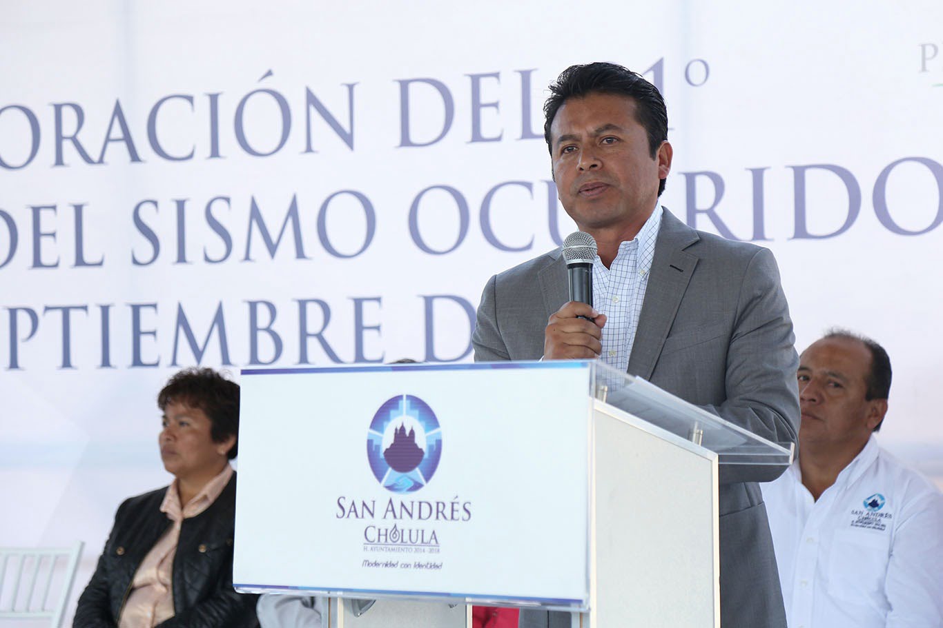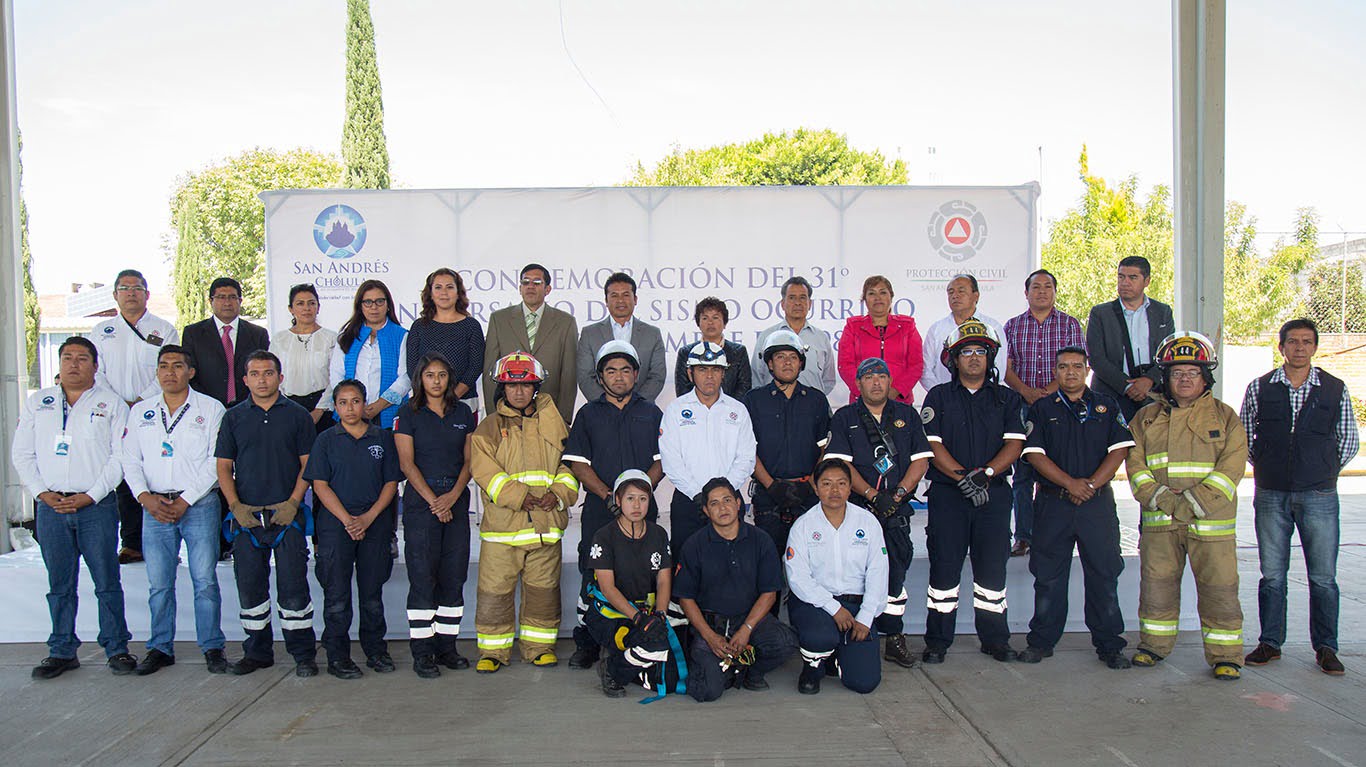 El Presidente Municipal de San Andrés Cholula, Leoncio Paisano Arias, realizó un simulacro de sismo para recordar la tragedia que vivió México con el terremoto de 1985.