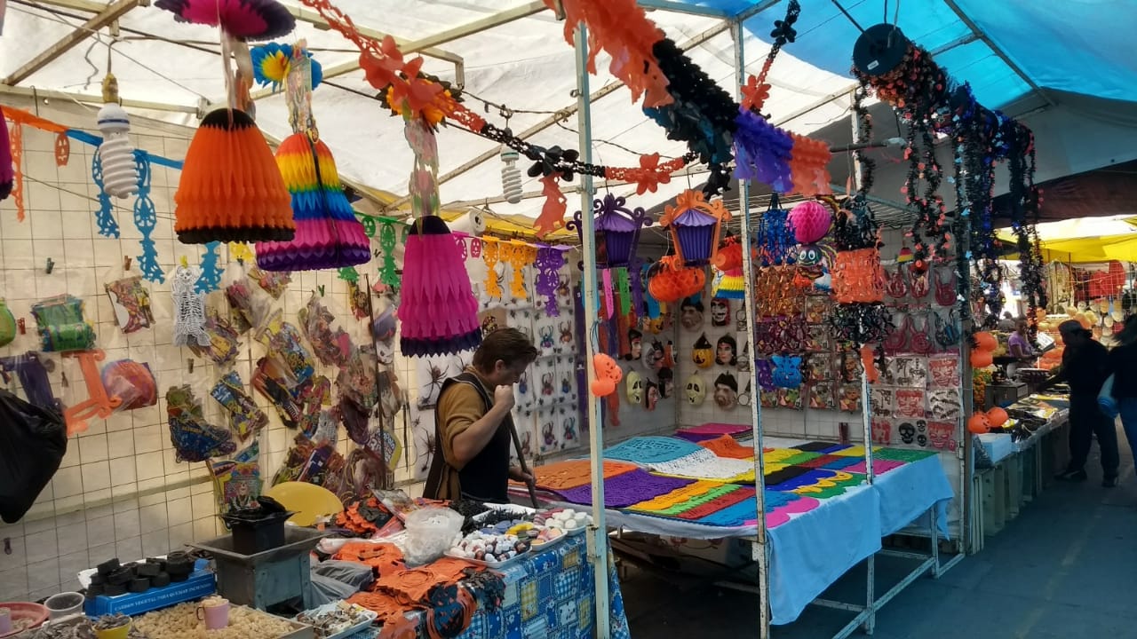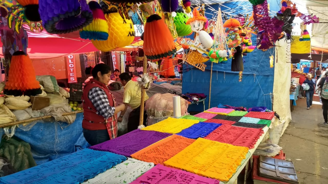 Asimismo enfatizó en que en este tianguis la gente puede encontrar artículos como papel picado, disfraces, tradicional mole, pan de muerto, antojitos, entre otros.